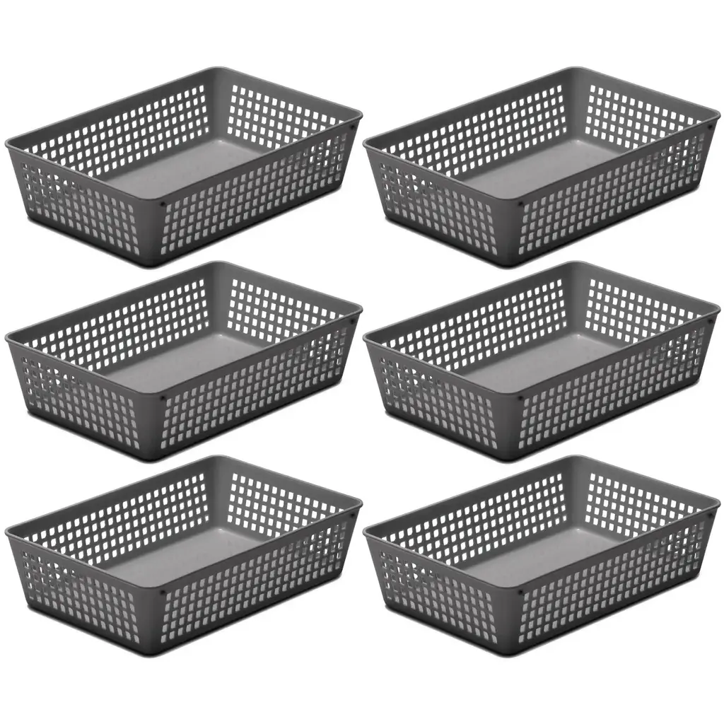 6-Pack Plastic Storage Baskets For Office Drawer, Classroom Desk - Pink