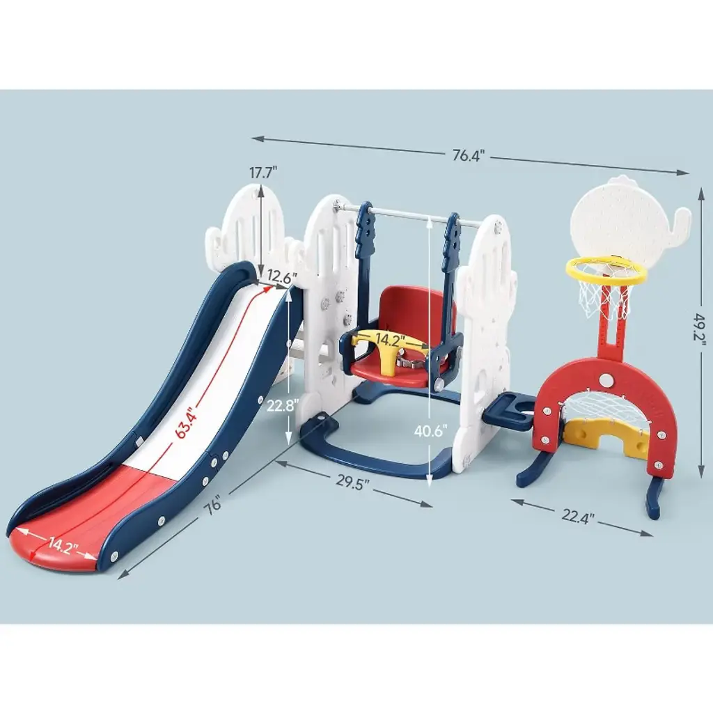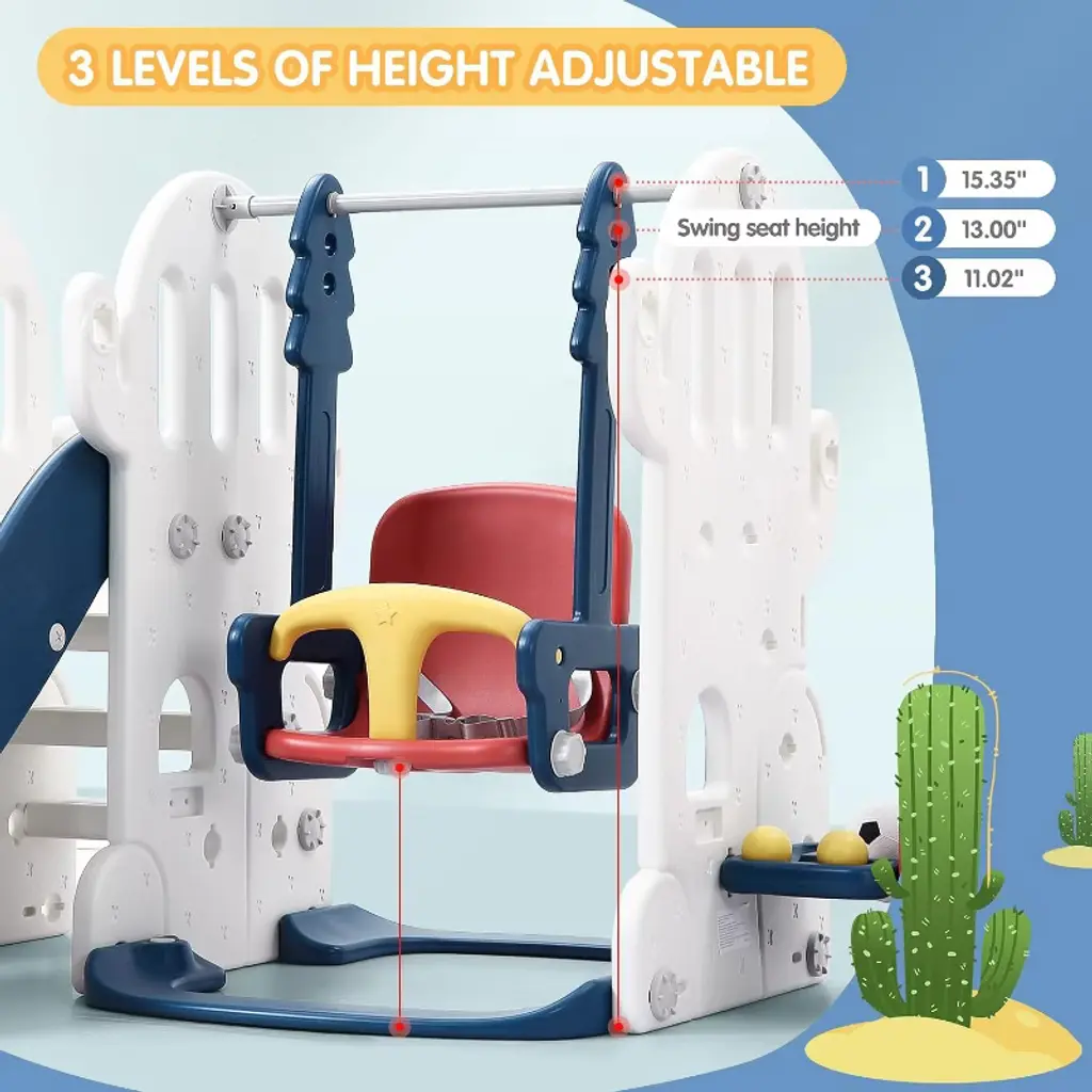 Anti-slip steps 4.33-inch step gap, in line with the baby's habit of lifting feet, thickened step pedal, safe and non-slip. 3-level height-adjustable swing 3-level adjustable integrated swing, can be adjusted appropriately according to the actual height of the baby. Lengthened and widened 3-stage slide The slide is designed with 3 sections of lengthening and widening, and a lengthened buffer, which cleverly combines high speed and buffering. Inject water or sand to increase stability The swing is equipped with a seat belt, a front fence and a water injection hole at the base for injecting water or sand to make it more stable.