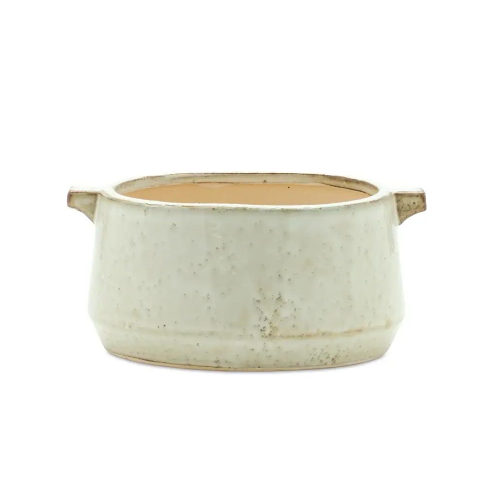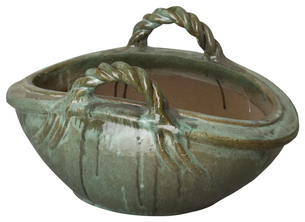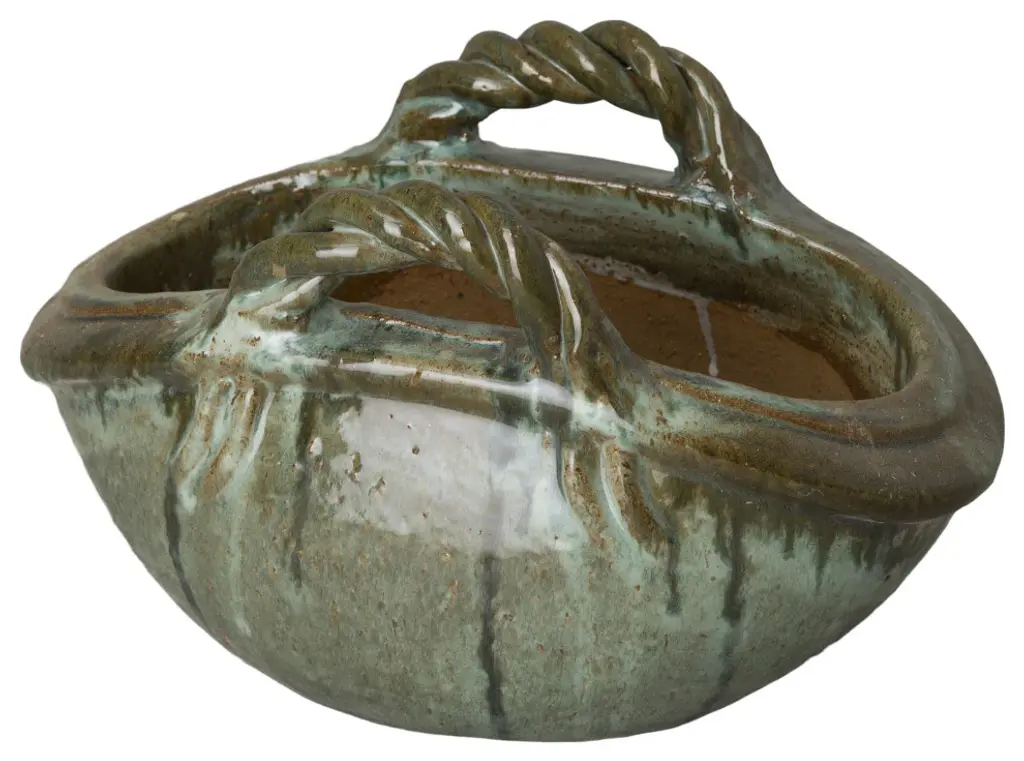 This Basket Planter is crafted of ceramic with a white glaze. Suitable for outdoor and indoor use. Adds color and texture to your home or garden.