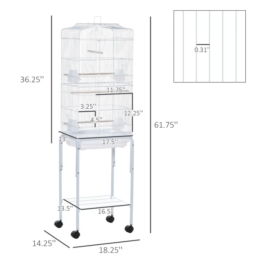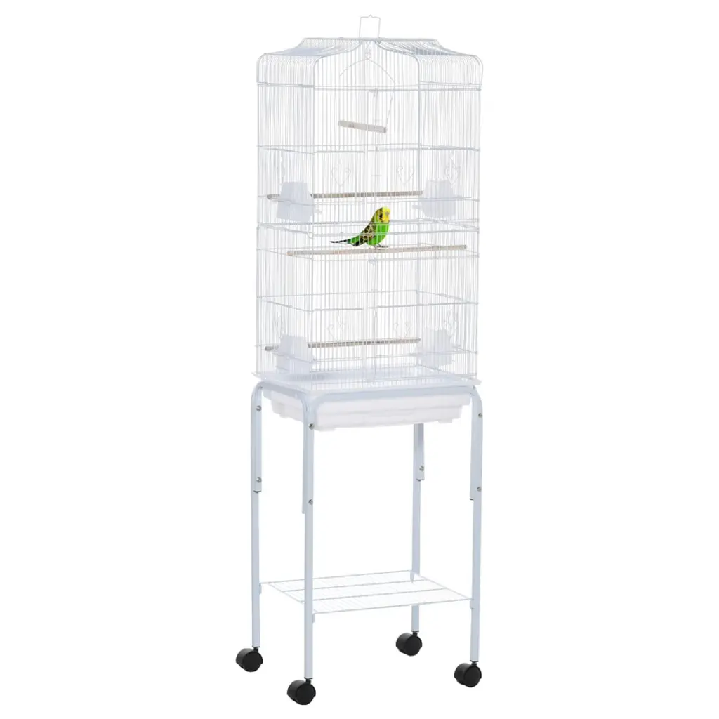 Akoasm 60 Inch Metal Parakeets Parrot Bird Cage & Bird House With Detachable Rolling Stand, Storable Basket And Accessories-white