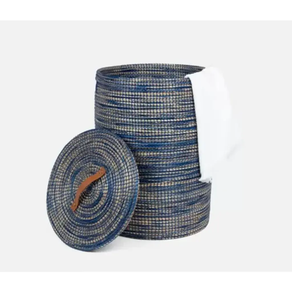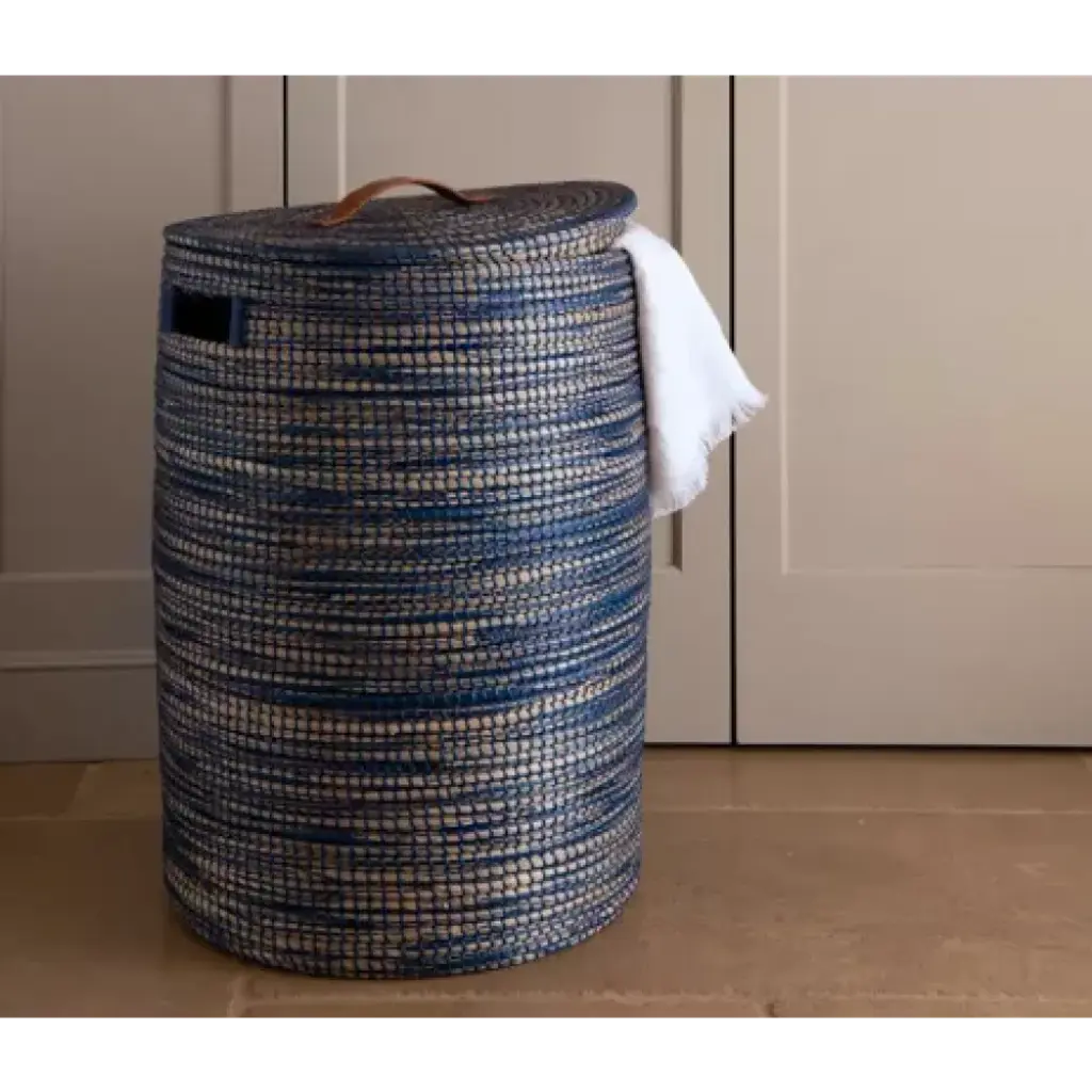 Dark blue hamper in tightly woven seagrass with leather handle. The designers at Pigeon & Poodle believe the details of a home are just as important as the furniture. A gorgeous toothbrush holder or handcrafted canister can elevate an entire bath, the perfect frame can heighten the feel of a whole space, and a good-looking storage basket can be your look’s missing link. With thoughtful design and top-notch craftsmanship, Pigeon & Poodle create home accessories with the care and attention typically reserved for larger pieces of décor.