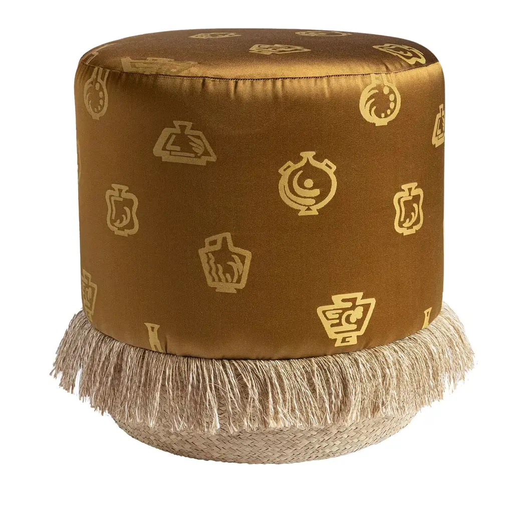 Alchimia Caldon Basket Base And Fabric Pouf By Gio Ponti