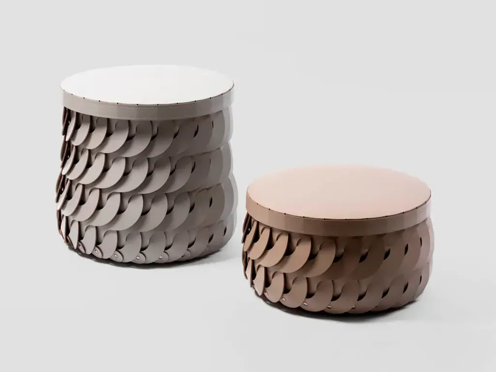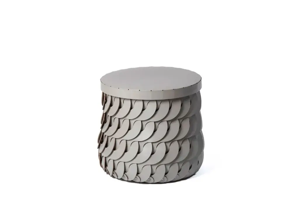 Alicante is designed for both indoors and outdoors. With a refined approach to a classic storage element, the Alicante basket is composed of S-shaped taupe leather elements intersecting one another, fixed on both ends with polished chrome pins. Perfect also as a blanket, shoes holder or a simple piece of décor this piece is available with or without lid and comes in different natural colors.