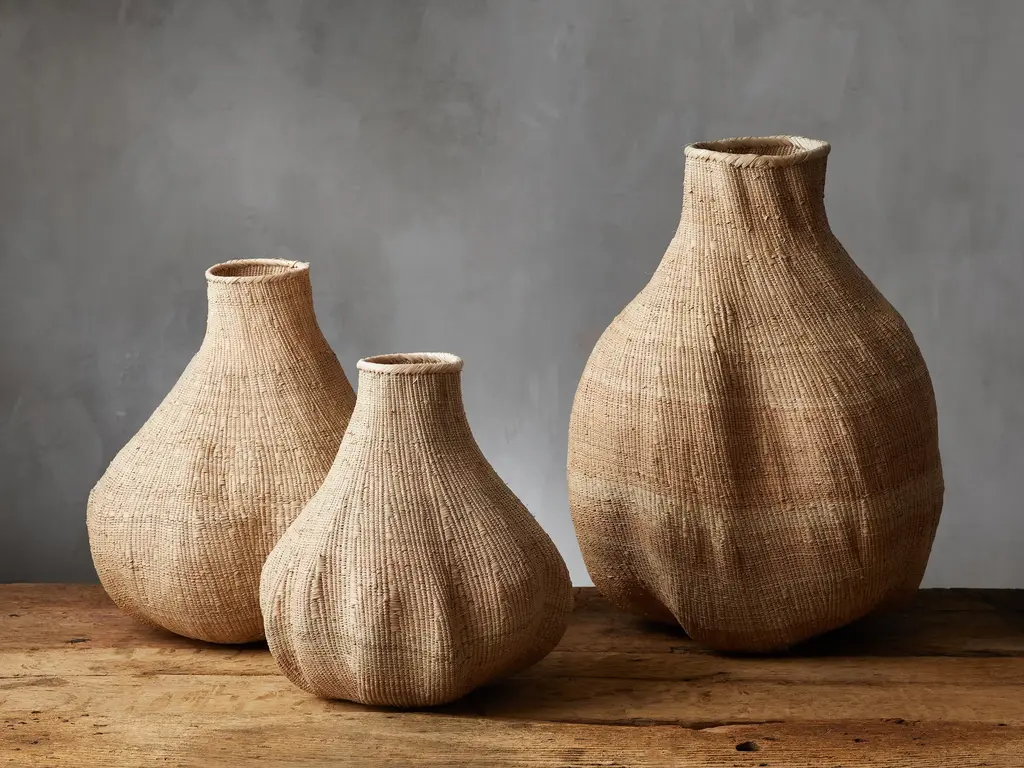 Handwoven from natural ilala palm outside Bulawayo, Zimbabwe, Tonga women utilize time-honored weaving techniques to craft each Allium Basket. Celebrate organic forms with these beautiful woven masterpieces—and mimicking the gourds that inspire their curved shapes, no two baskets are exactly alike. Crafted from 100% natural, sustainably harvested raw ilala palm. Intended for decorative use and with dry botanicals only. Due to the handmade nature of this product, every basket is completely unique, and shape and size may vary.