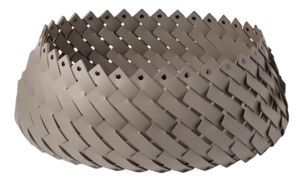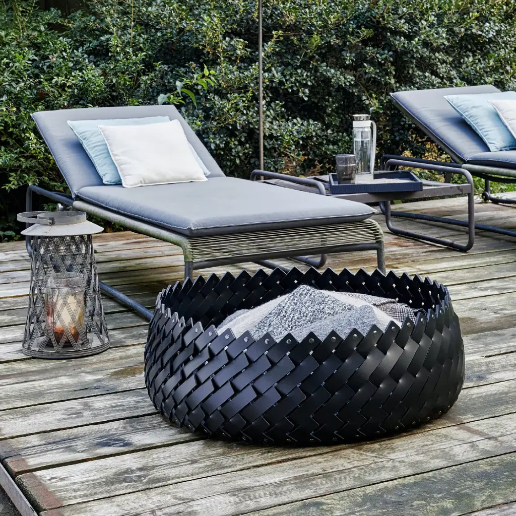 This sophisticated piece is extremely versatile and can be used in a living room as a magazine display or as a storing place for logs by the fireplace. Its large size makes it ideal as a container of various objects, such as towels in a bathroom. Part of the Almeria series, this large and short basket is made in eco-friendly leather that can be easily cleaned and can be used also outdoors, on a patio or on a boat. Its unique texture of hand-woven diagonal strips will make a statement in every place this piece is used.