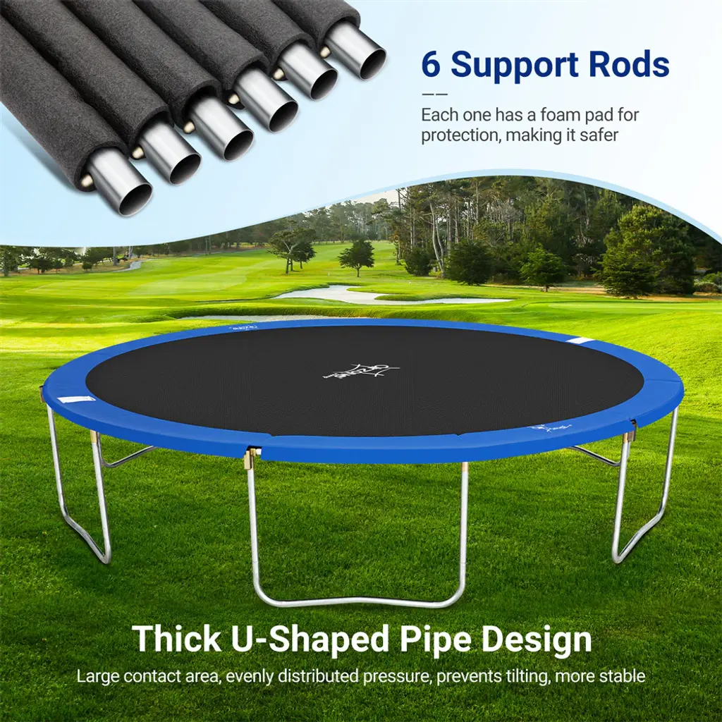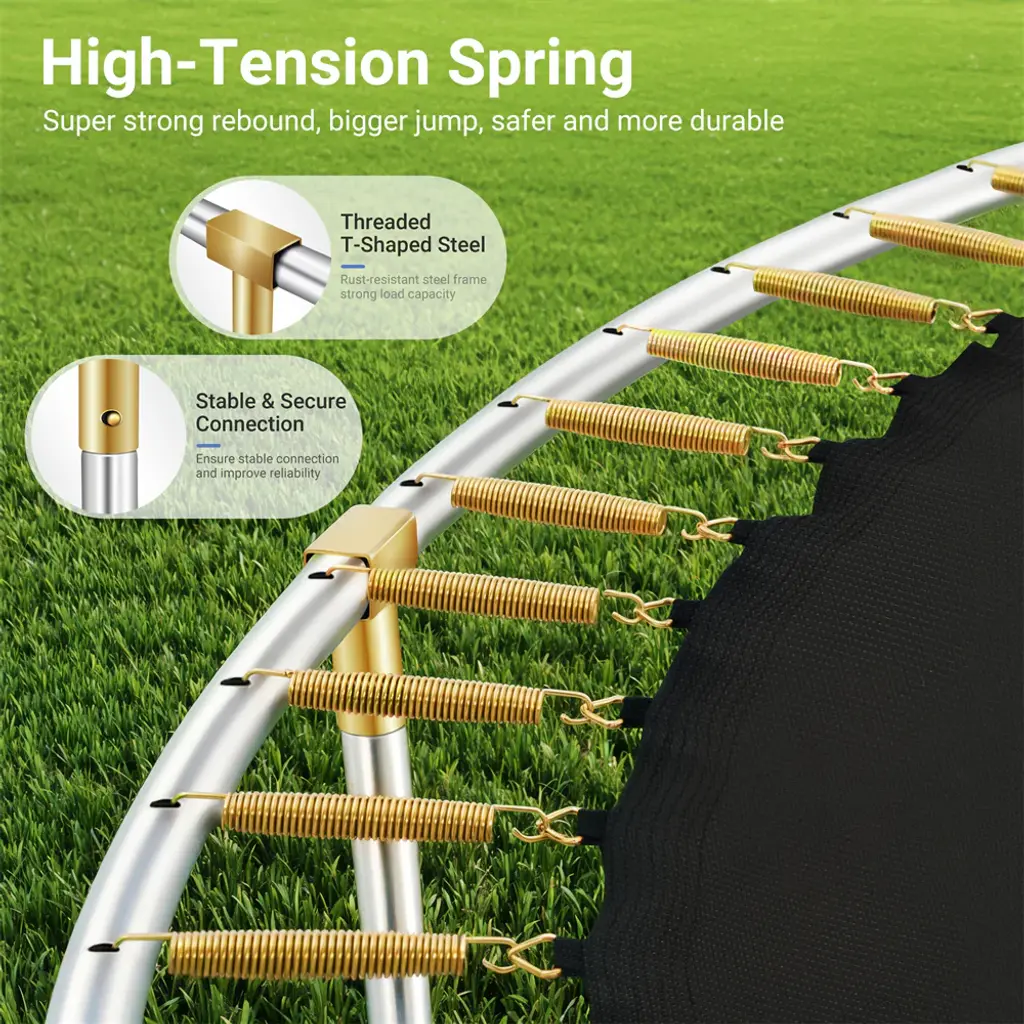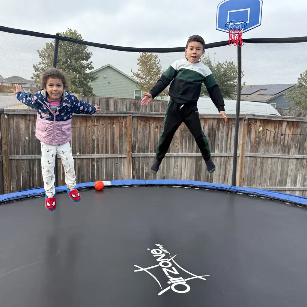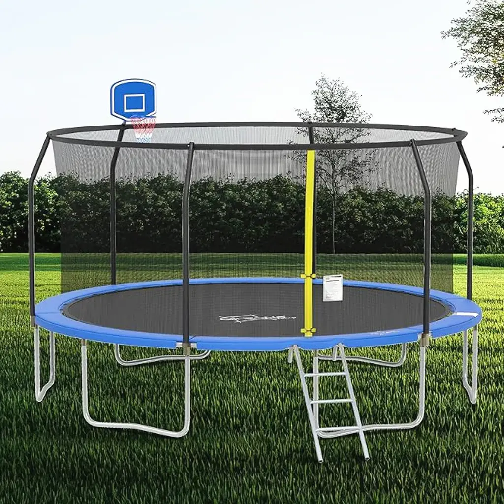 Unleash endless fun and laughter in your backyard with our next-gen trampoline, designed for ultimate safety with curved poles to protect your kids from accidents. ASTM compliant and featuring powerful springs for an exhilarating bounce, this trampoline comes with a sturdy ladder and durable double-sided zippers for easy, safe access. Plus, the added basketball hoop ensures unforgettable memories for the whole family, with a generous 400 lbs capacity that invites everyone to join in the joy!