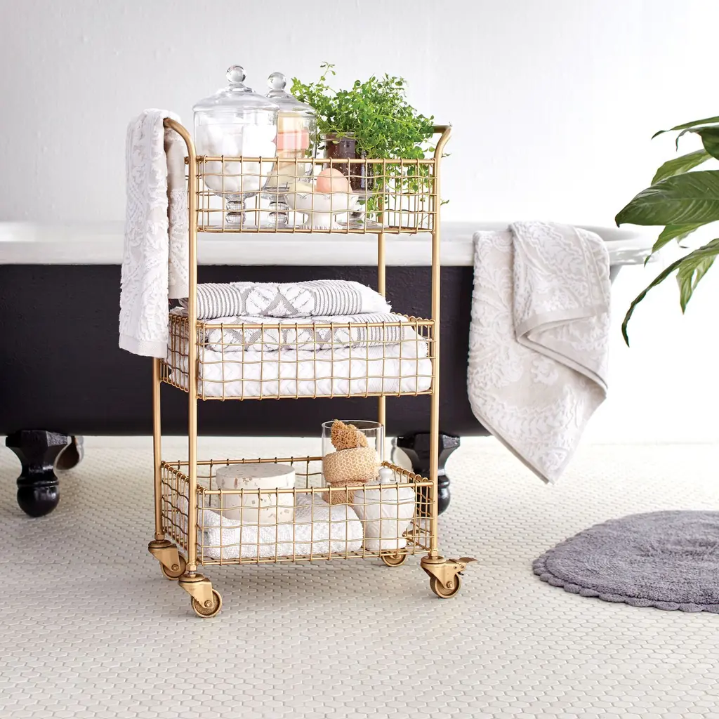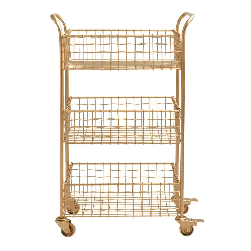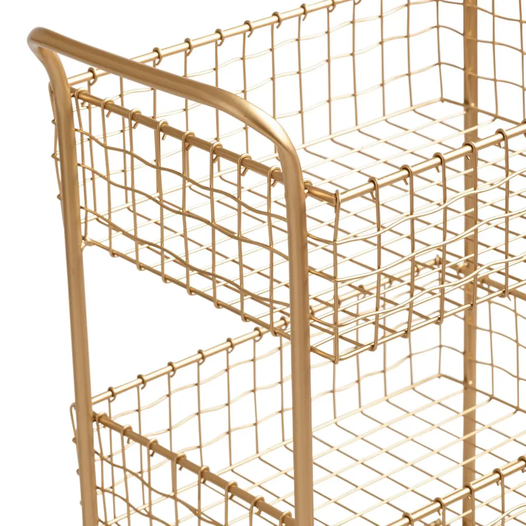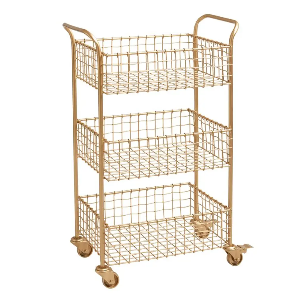 Antonia Gold Wire Basket 3 Tier Rolling Cart