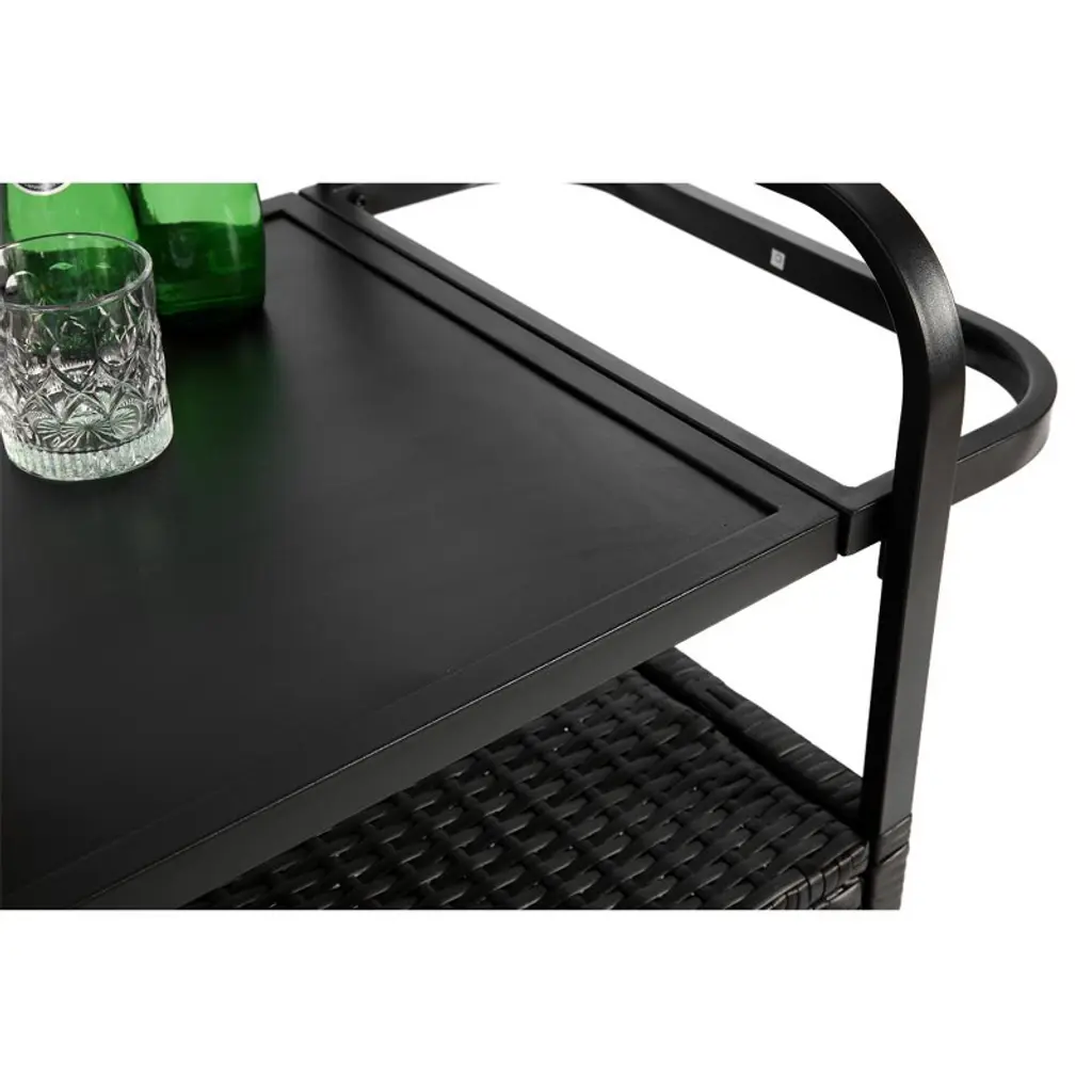 Upgrade your outdoor entertaining with this versatile and stylish patio bar table, designed for both mobility and durability. Featuring four 360-degree wheels (two lockable for stability), this rolling kitchen island glides effortlessly across your patio or deck—no heavy lifting required. Crafted with a weather-resistant powder-coated steel frame and waterproof PE rattan wicker, it withstands the elements while maintaining a sleek look. The convenient side basket offers extra storage for utensils, bottles, or spices, and the rounded handle ensures easy maneuvering. With simple, labeled assembly and low-maintenance cleaning (just wipe with a dry towel), this multifunctional bar table is perfect for BBQs, poolside gatherings, or as a portable outdoor serving station