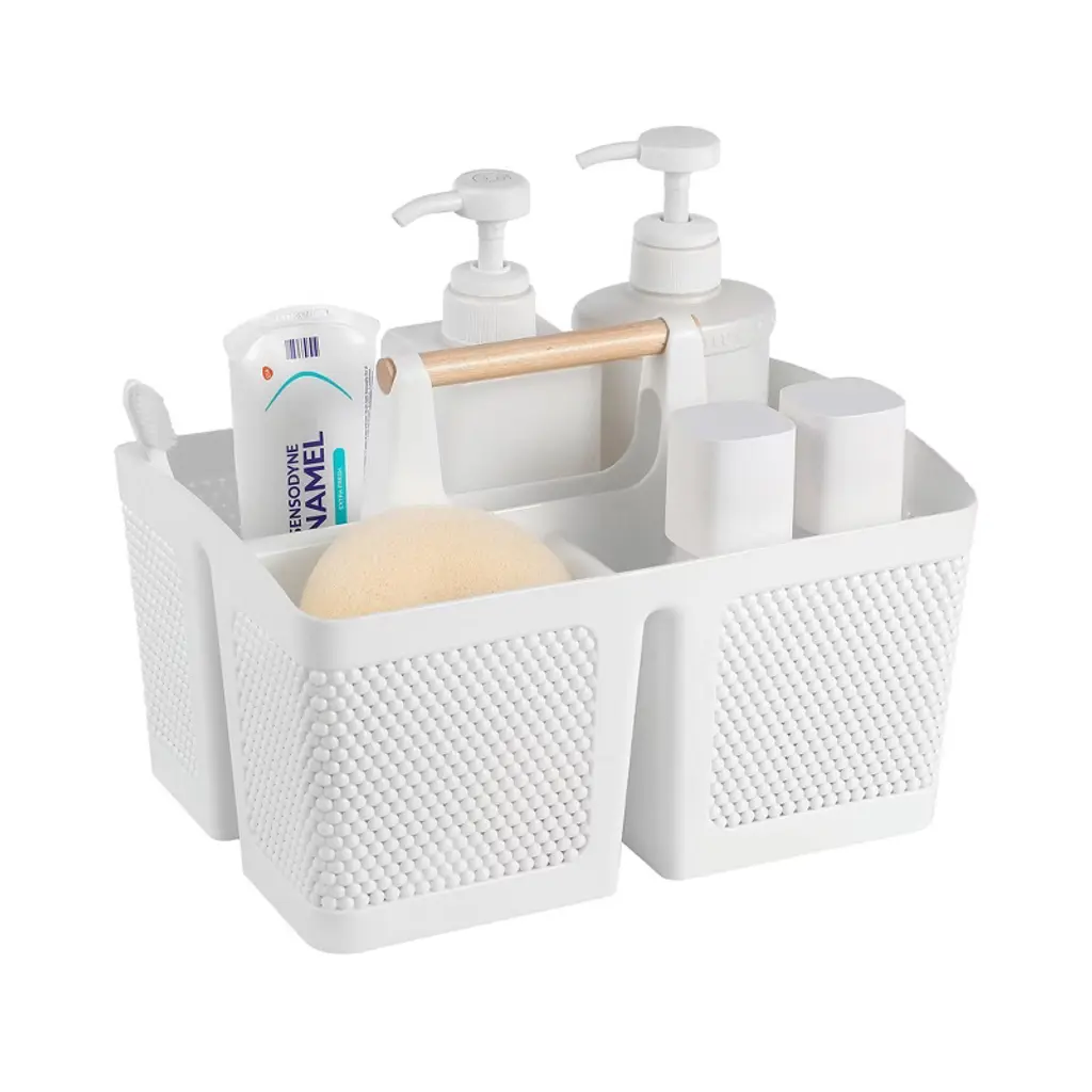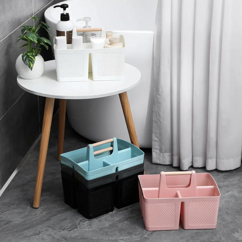 Upgrade your organization game with this portable shower caddy! Crafted from BPA - free plastic and a polished wooden handle, it's both durable and comfortable. With 3 compartments, it allows for efficient classification of toiletries, skincare products, and even toys. The basket has 4 drainage holes to keep your items dry. It's not just for the shower; use it on bathroom shelves, under - sink cabinets, or in closets. Suitable for college students, moms, kids, and everyone in between. Easy to clean, just rinse with water. Multiple color options are available to match your style. This caddy is a must - have for any space, bringing convenience to your daily life.