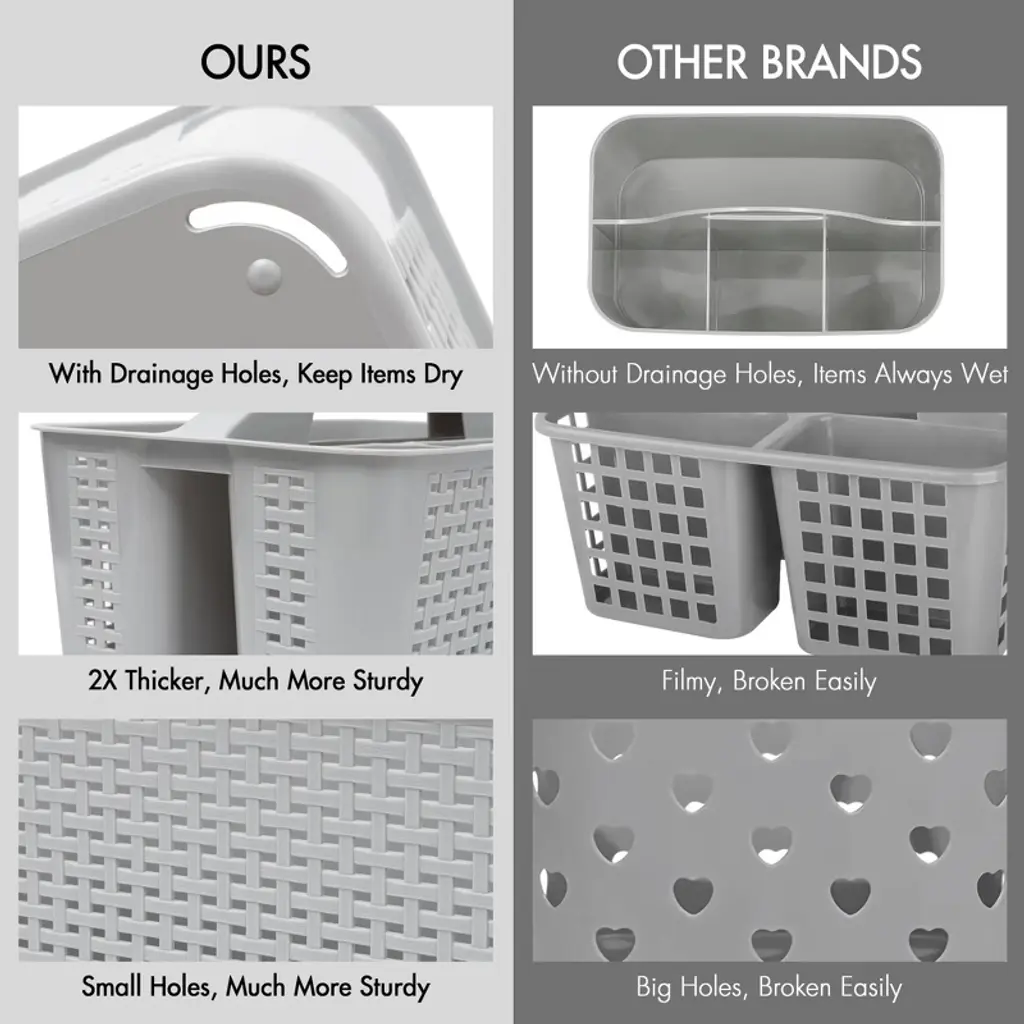 Discover the ultimate solution for your storage needs with this portable shower caddy. Crafted from BPA - free and durable plastic that's twice as thick as others, it offers long - lasting quality. With 3 compartments, it keeps your items neatly separated. The built - in handle makes it easy to move around your home, perfect for bathrooms, kitchens, garages, dorms, and offices. It can hold a wide range of items like bath products, hair supplies, cosmetics, toys, and cleaning tools. The drainage holes at the bottom prevent water retention, keeping your items dry. Simply rinse it with water for easy cleaning. Whether you're a college student, camper, or just looking to organize your space, this caddy provides the convenience you need for quick access to your essentials.