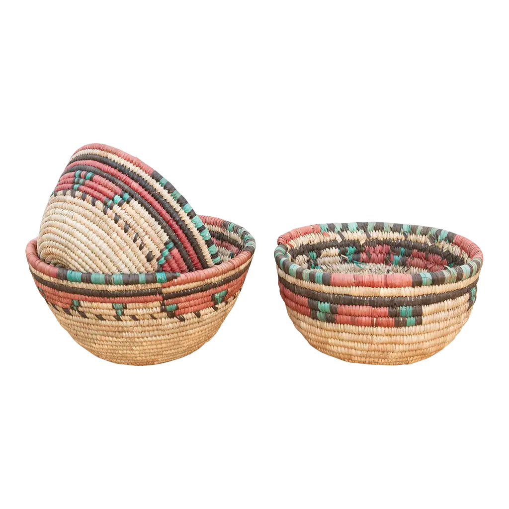 Arley Blue/natural Basket Round: 14"d X 11"h, 8.5"d X 7.5"h, Set Of 2