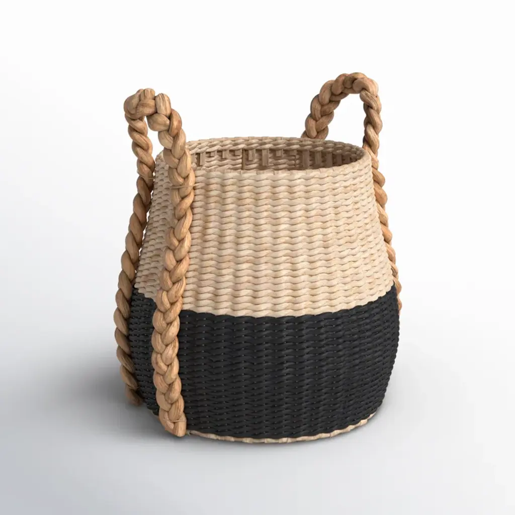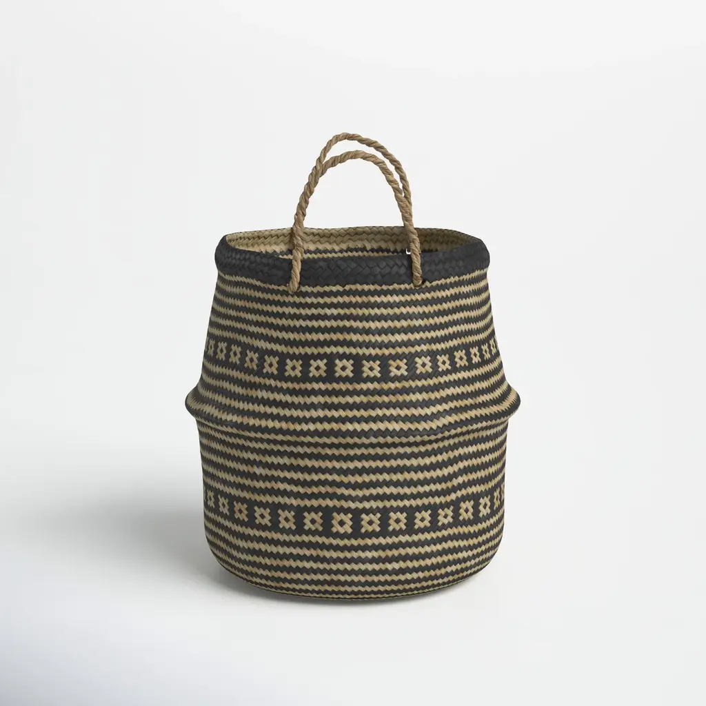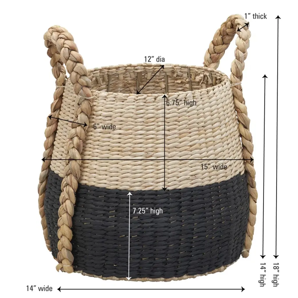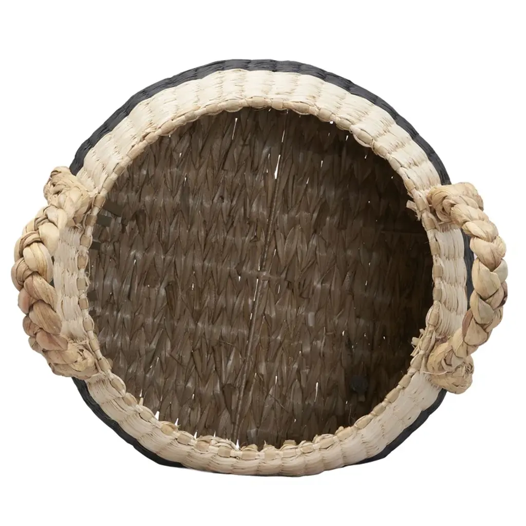 This stunning, organically woven storage basket will transform any bedroom or living space by stylishly stowing away sweaters, textiles, or bits and baubles. Neatly corral any bulky, rarely used, or unsightly household items in the ample storage space, and utilize the sleek, integrated handles for easy mobility. Timeless detailing and natural appeal will carry this sophisticated storage piece through every home refresh. The storage basket is made from natural cattail, paper rope, and metal. A structured metal frame ensures the strength and longevity of the piece.