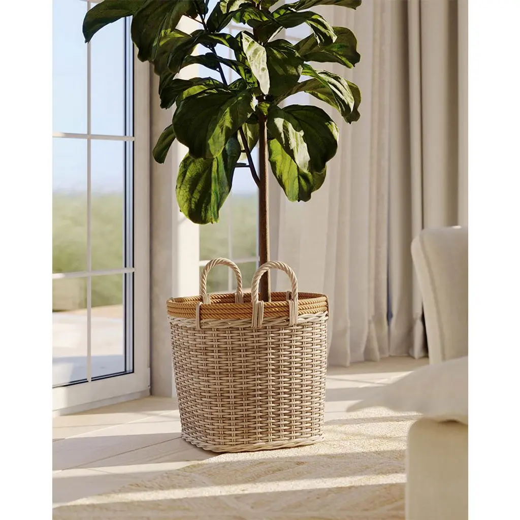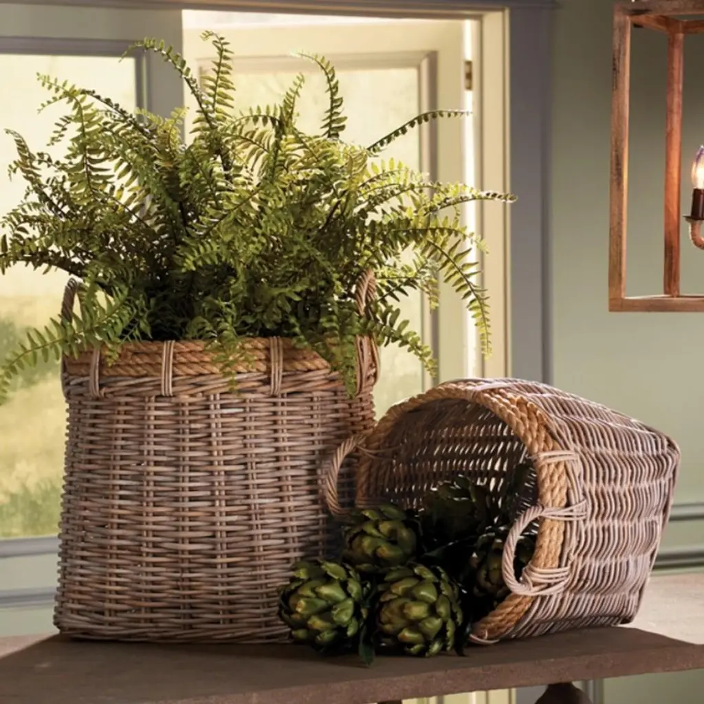 Arthur Coastal Beach Brown Woven Rattan Harvest Baskets - Set Of 2
