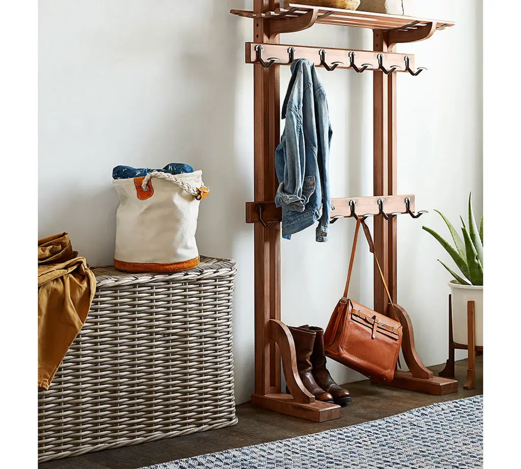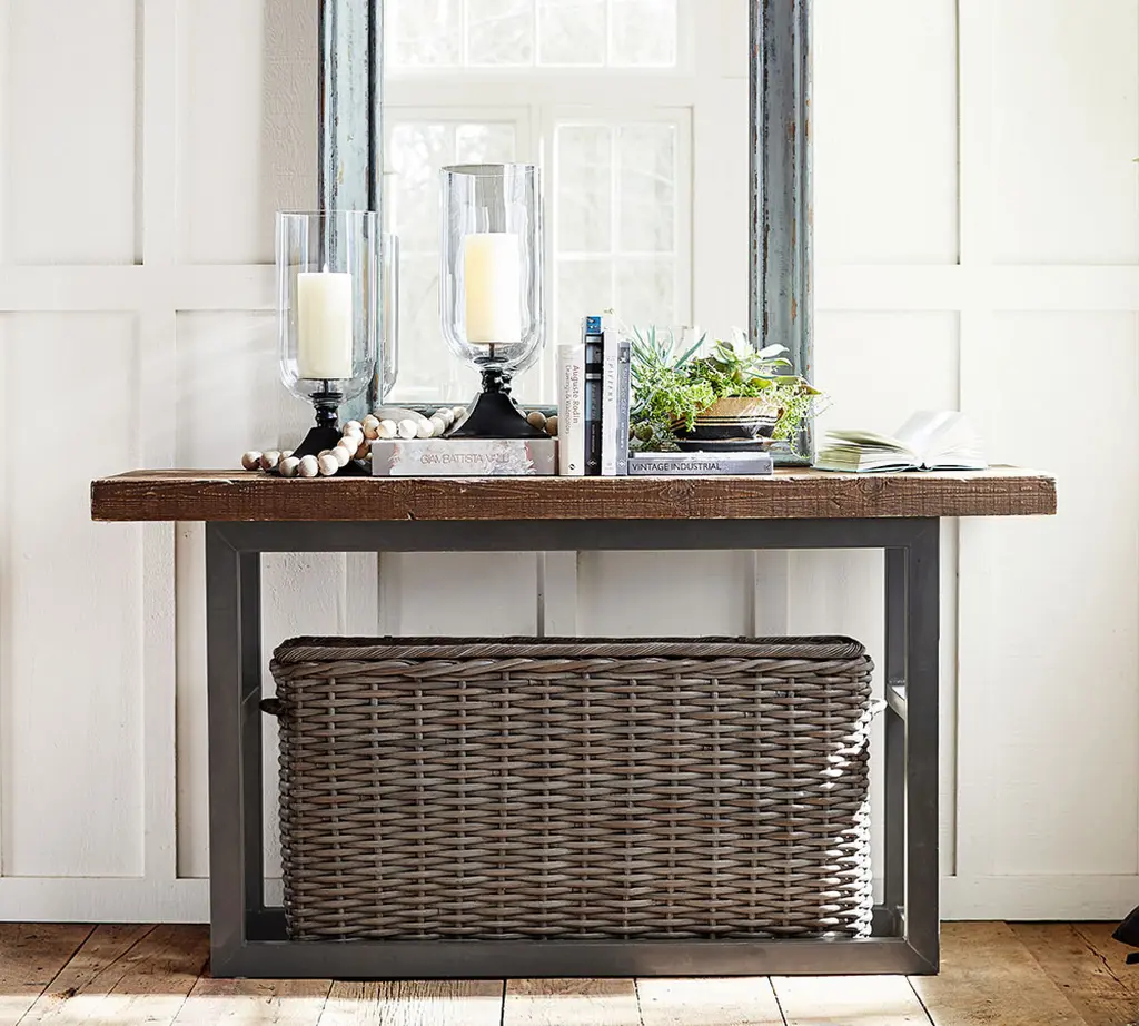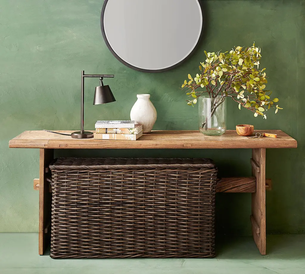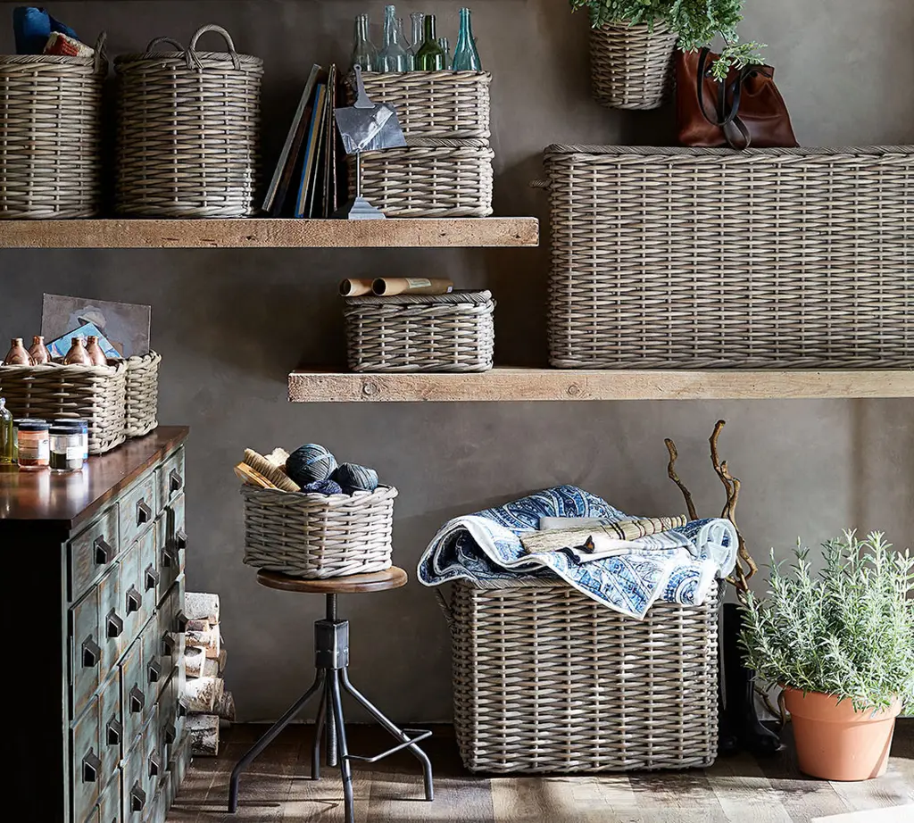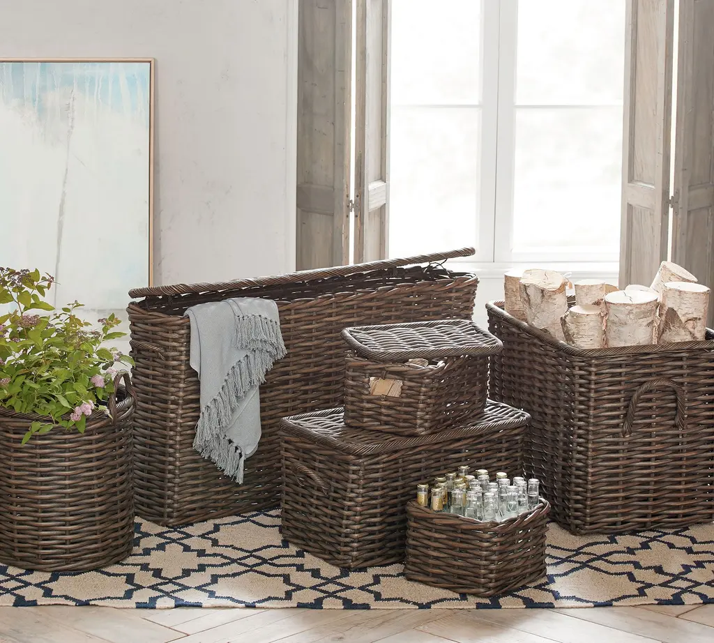 Think outside of the linen closet. This large basket lends itself to throws, board games and other sundries for a stylish storage solution. The rattan and wicker weave is both durable and decorative, and the lid keeps things out of view.