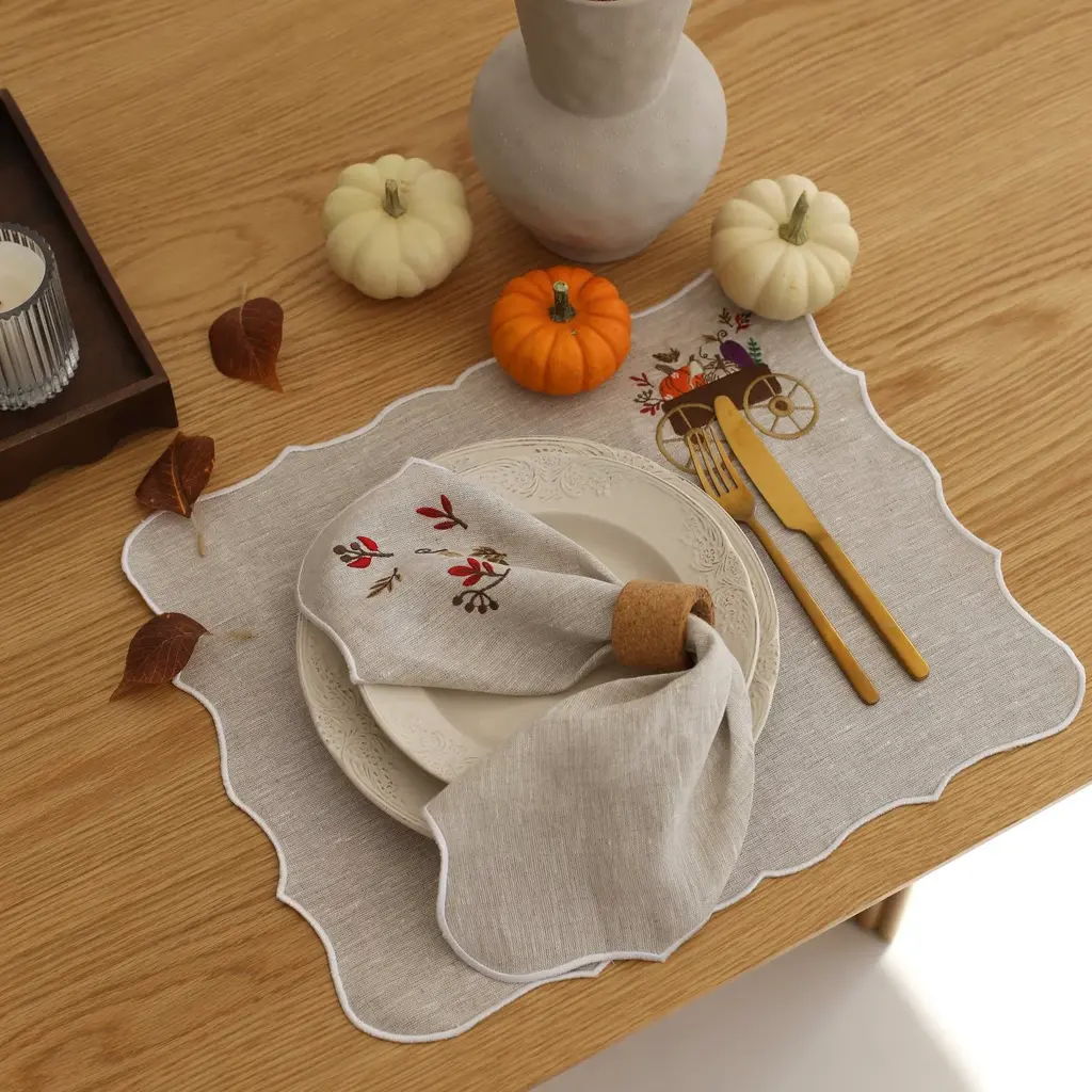 These Autumn-themed placemats will bring joy to your table. These autumn-themed placemats are made of Turkish Linen and are specially designed for your autmn dinner tables. These beautiful tablemats will definitely shine on your feast table.Set of 2