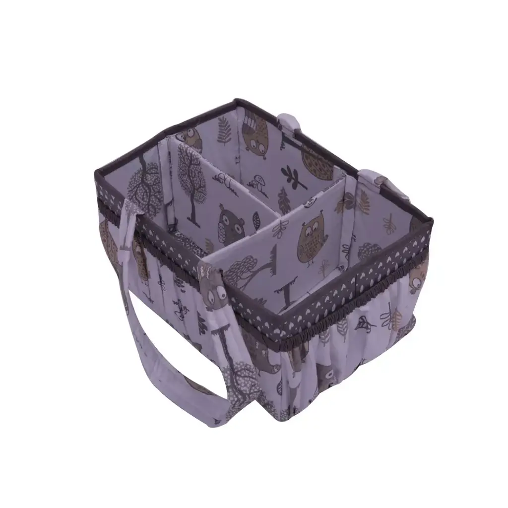 Add organization to any area of your home with the portable Nursery/Toddler Storage Caddy by Bacati. Perfect for dressers and changing stations, this lightly padded caddy has 8 outer pockets and a removable "T" separator for maximum versatility. The soft cotton percale fabric with stiffner inside keeps the shape intact, lining and handles feature a padded with polyfilled and cordinating trim. Keep diapers, wipes and other necessities tidy while traveling from room to room. Caddy also functions as an organizer for crafts, picnics, pet supplies, etc. Measures 12.5 in x 6.25 in x 8.5 in.
