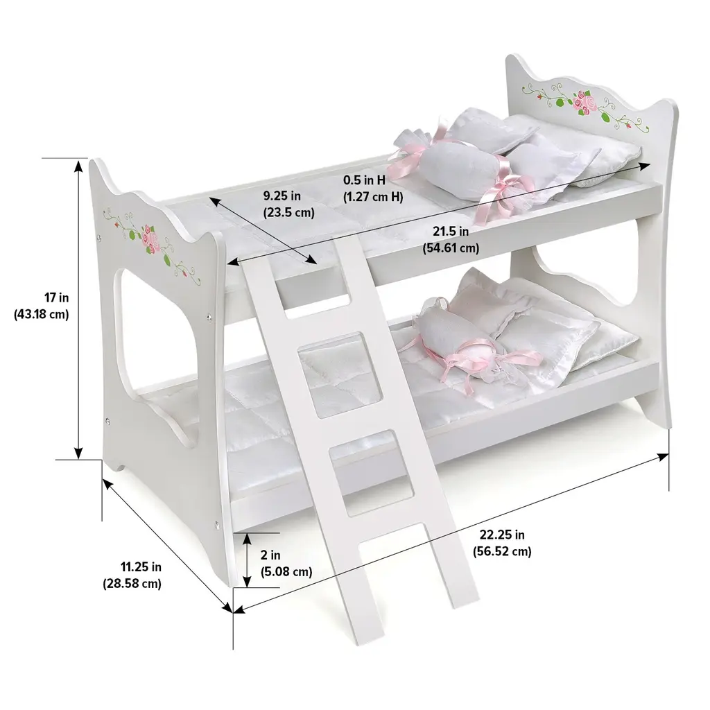 Badger Basket Doll Bunk Bed With Ladder And Bedding - White Rose - 22.25" X 11.25" X 17" - White/pink/green - 22.25" X 11.25" X 17"
