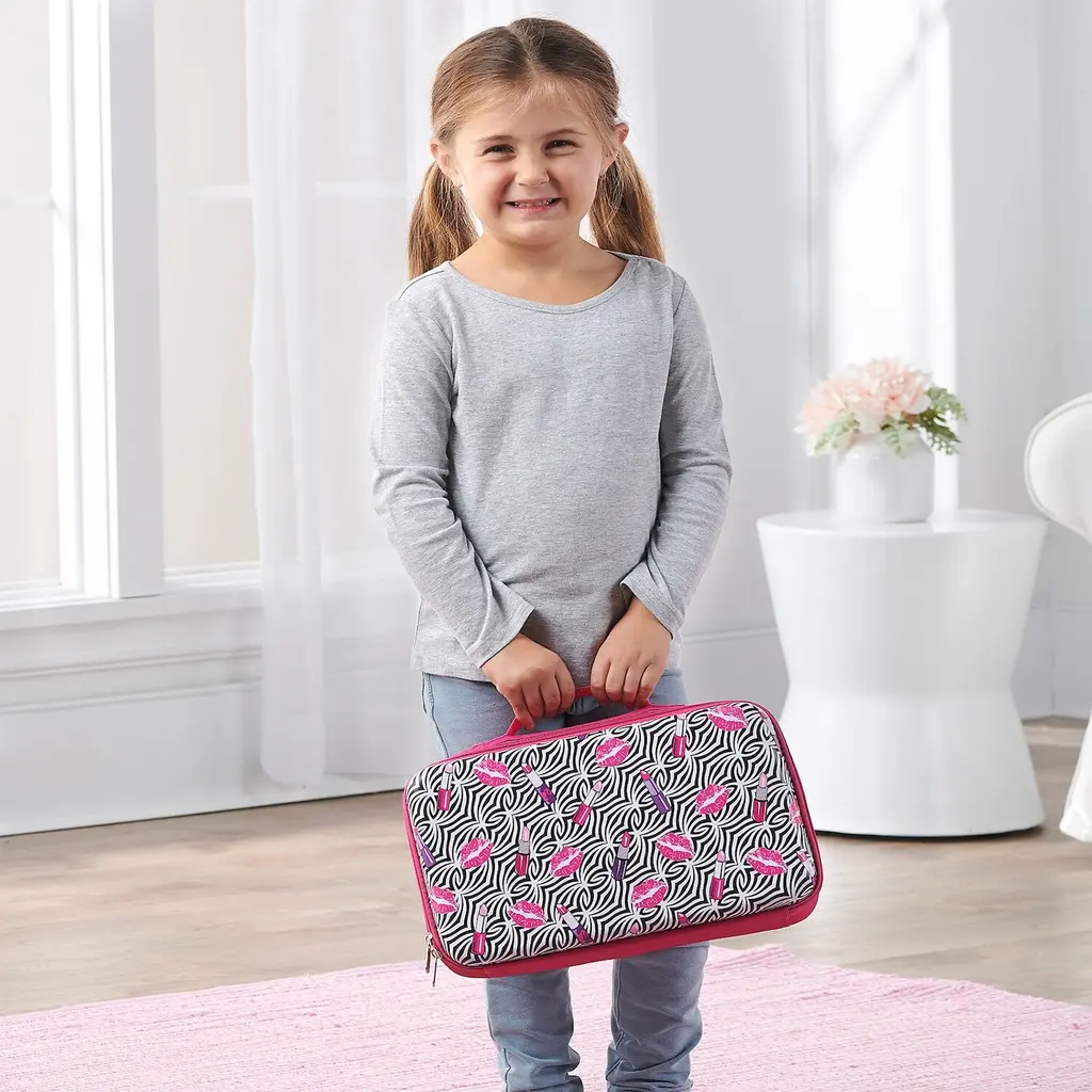Badger Basket Fashion Doll Travel Case For 12-Inch Dolls - 13" X 8" X 4" - Pink/multi