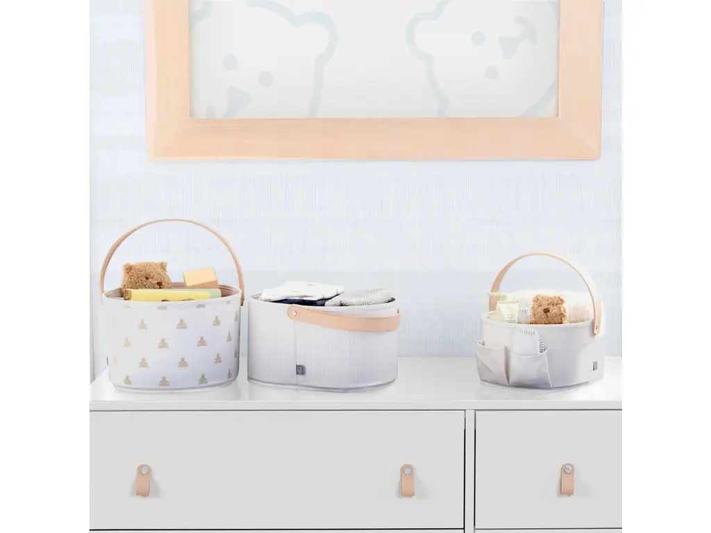 Badger Basket’s soft and versatile First Class 5-Piece Doll Travel Set encourages hours of inventive play for kids at home and is an uncomplicated solution for taking a favorite doll or stuffed animal on the road. Five-piece toy set includes doll travel bed, car seat/booster seat, hands-free front pack carrier, reversible blanket, and fluffy pillow. Fun for multiple kids playing together to engage with up to three dolls or plush pets at the same time. Walk, carry, or drive your doll around with ease! Lightweight doll bed includes handles, a blanket, and a pillow. Spacious bed has ample room for your doll and for packing some doll clothing and accessories, too. Soft and flexible front pack carrier conforms to your child's body and bends and moves with her. Foam padded waist belt won’t twist and bunch and adjusts from 20.5 to 27 inches with shoulder straps that are 16 inches from the top to under the arm. Click-lock buckle keeps the belt secure on walks to the park. Substantial front harness with wide crotch panel fully supports your doll keeping her stable and upright. Reversible design allows you to carry your play baby facing in to your chest, or on the front facing out. Stash a small toy or pacifier in the storage pocket on back of the carrier seat to soothe your pretend baby on the go. Easily load and unload the carrier by opening the hook-and-loop tab on one side. Use the booster seat at the kitchen table for meal times, or grab the carry handle and take along as a simple travel seat for doll fun in the car and at restaurants. Your little pal sits upright strapped into the three-point harness and rides in comfort on the thickly cushioned platform. Use the 5-inch deep storage pockets on back of seat for doll clothes and small accessories. Secure click-lock buckles ensures that no one gets out of their seat during dinner or while the car is moving! Fuss-free 1-inch wide harness webbing prevents tangling and knotting. Good size for larger stuffed animals as well, with 5.5-inches between the crotch belt and back of the seat. Seat folds compactly when not in use, with fabric hinges connecting the top of the seat to the back to prevent folding in the wrong direction. Spot clean as needed (do not immerse). Designed for any brand of doll up to 18 inches. Fits 18-inch dolls such as American Girl, My Life As, Madame Alexander, Ashton Drake, and Our Generation; and fits 15-inch American Girl Bitty Baby dolls and 14.5-inch American Girl WellieWishers dolls. Made with 100% polyester fabric. Portable bed overall size 19.5 inches L x 8.5 inches W x 10 inches H. Pillow: 7 inches L x 4 inches W x 2 inches H. Reversible blanket: 19 inches L x 15.5 inches W. Travel car seat: 8 inches L x 8 inches W x 8.5 inches H. Front pack carrier: 8.25 inches L x 12.5 inches H. Assembled weight: 1.75 pounds. All measurements approximate. No assembly needed. Illustrated instructions included. This item is for use with dolls only and is not for use with real infants or pets. /!\ WARNING: CHOKING HAZARD - Small parts. Not for children under 3 yrs. Product complies with all currently applicable safety standards. Manufacturer’s 30 day limited warranty to the original purchaser. Product may vary slightly from shown and described. Dolls/accessories shown are for illustration purposes only and are not included with the product. Actual color/finish may vary slightly from screen display. This item ships in its original carton that may include a product photo.