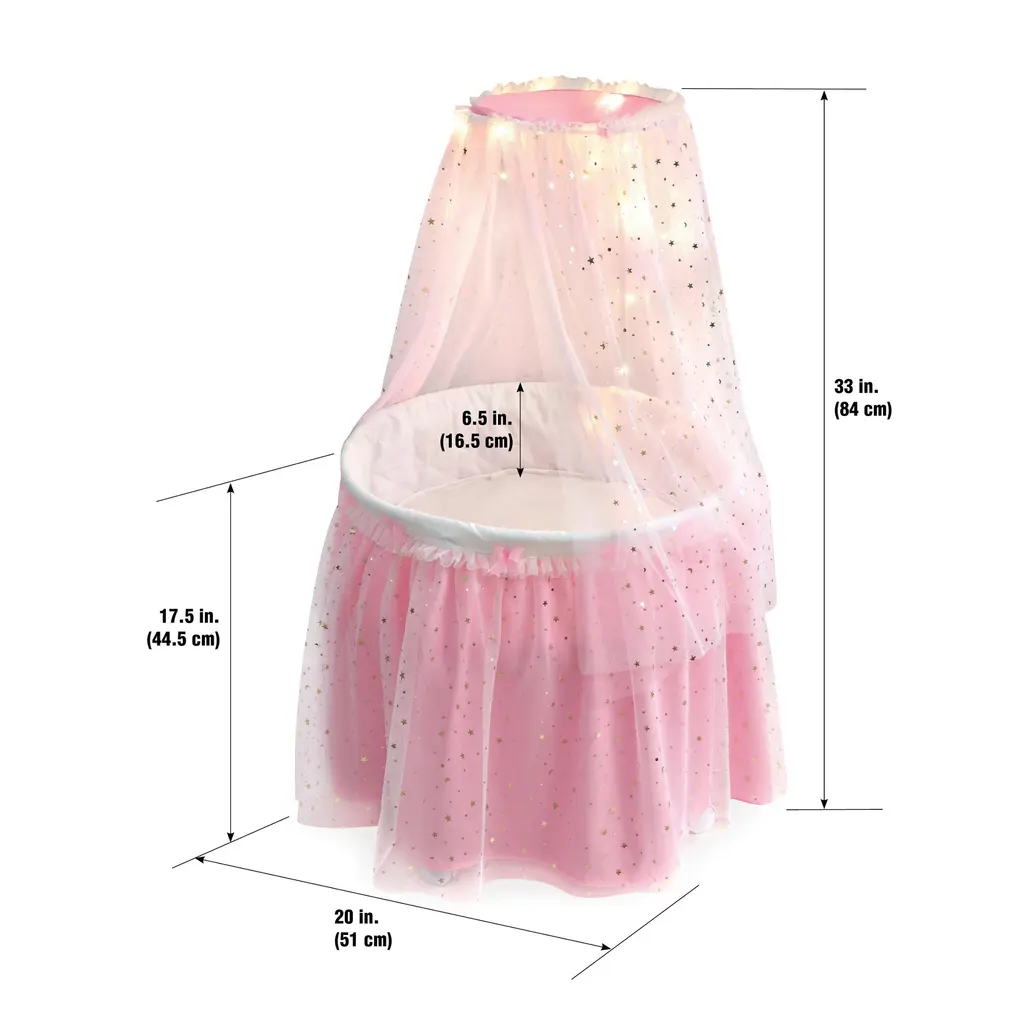 Badger Basket Sweet Dreams Round Doll Bassinet With Canopy And Led Lights - Pink/white/stars - 20" X 20" X 33" - Pink/white/gold - 20" X 20" X 33"