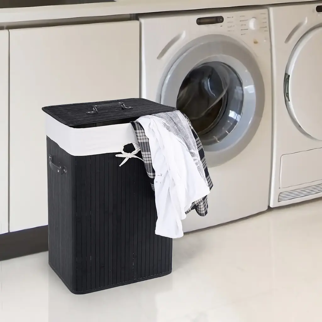 Our new laundry hamper is made of premium bamboo material, which is sturdy, lightweight and harmless. It's suitable for frequent use in your bedroom, laundry room or bathroom. The laundry hamper comes with the lid and removable liner, which can prevent the odor release. Except for storing your dirty laundry, this hamper also can be used to store your washed clothes, children's toys and other products.Features:Specification