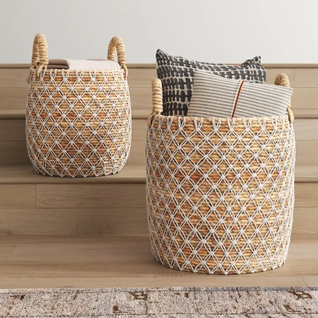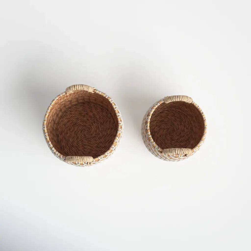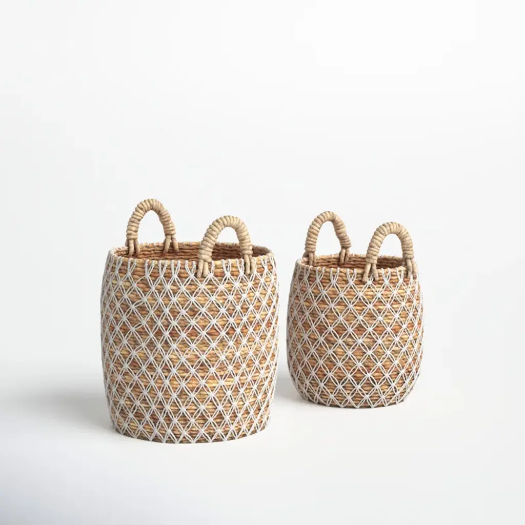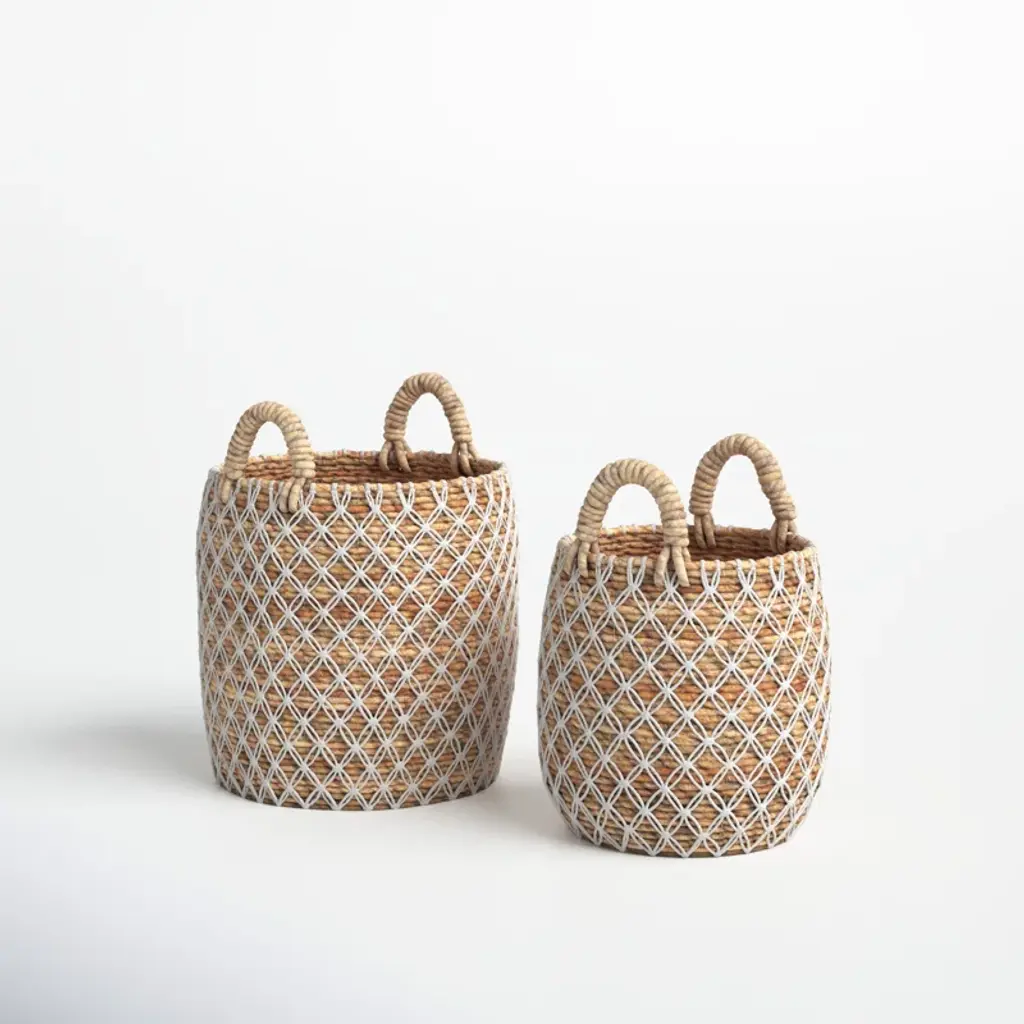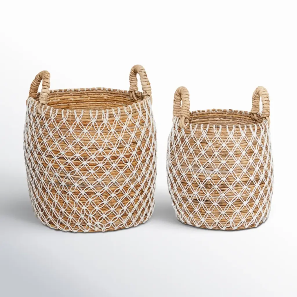 Banana Leaf Handmade String Detail Decorative And Functional Storage Basket With Handles