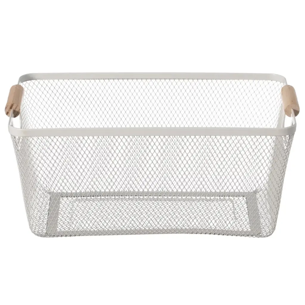 This wire mesh basket combines functional design with versatility, offering an efficient storage solution for a wide range of household needs. Its sturdy, open-frame construction allows for quick access and clear visibility of contents, while the breathable design ensures proper air circulation, making it ideal for storing a variety of items, such as craft supplies, cleaning products, toiletries, and small household tools. Whether placed in a closet, on a kitchen countertop, or within a utility room, this basket serves as a practical organizer that can hold everything from books and documents to kitchen essentials or bathroom toiletries. Its modern, industrial-style appearance makes it a perfect fit for both contemporary and rustic décor. The simplicity of the wire design adds a touch of minimalist charm, while its unobtrusive nature complements any room without overwhelming the space. Highly adaptable to different settings, this basket can be used in nearly every area of the home. Organize your pantry items, arrange office supplies, or store bathroom accessories with ease. The wire mesh design allows for stacking, helping you maximize storage in smaller areas without sacrificing style. Ideal for homes, offices, and even craft spaces, this wire mesh basket is a thoughtful solution for keeping spaces tidy and organized, all while maintaining a clean, modern aesthetic. Whether used as a standalone piece or paired with other storage solutions, it’s an excellent choice for anyone seeking a practical and stylish way to manage clutter.