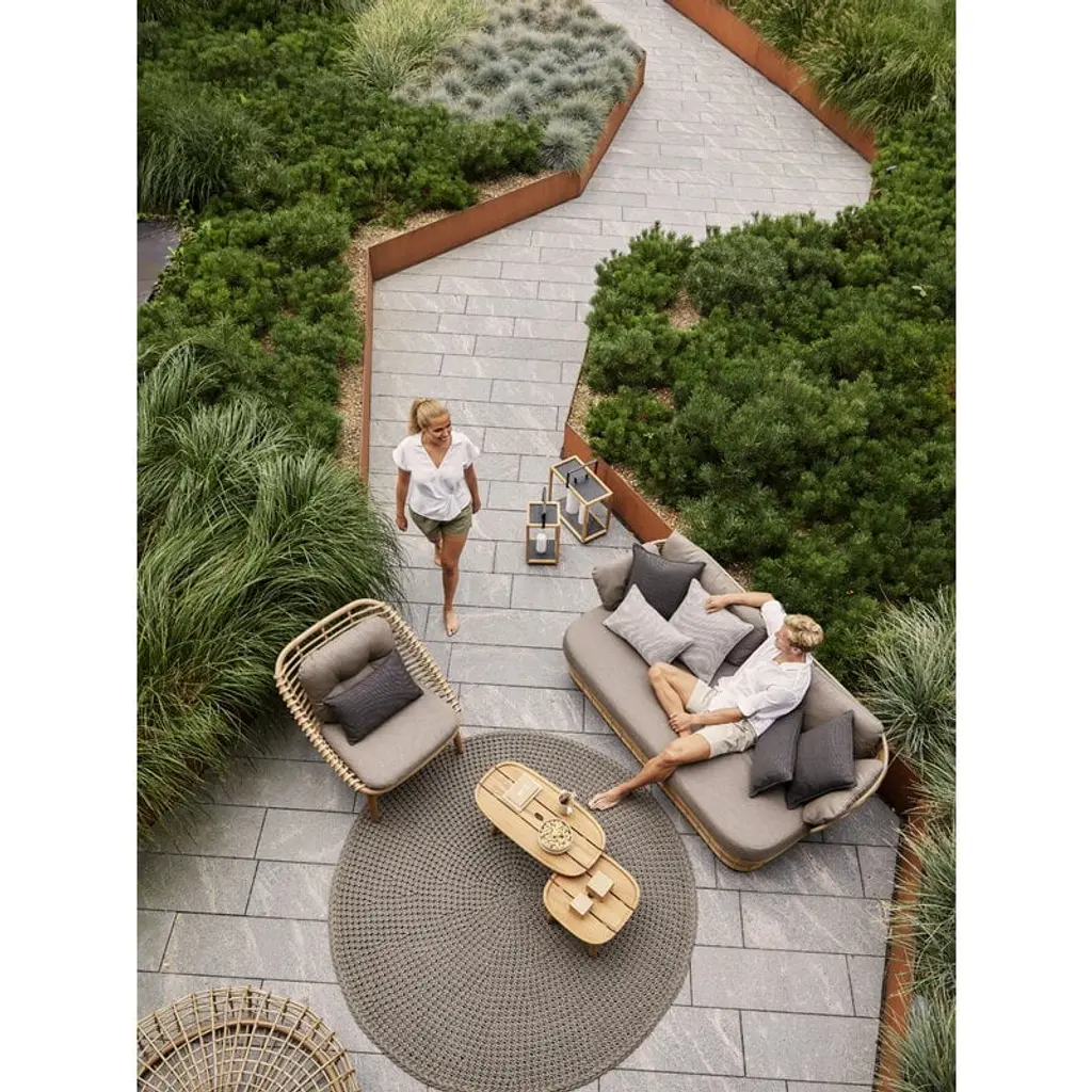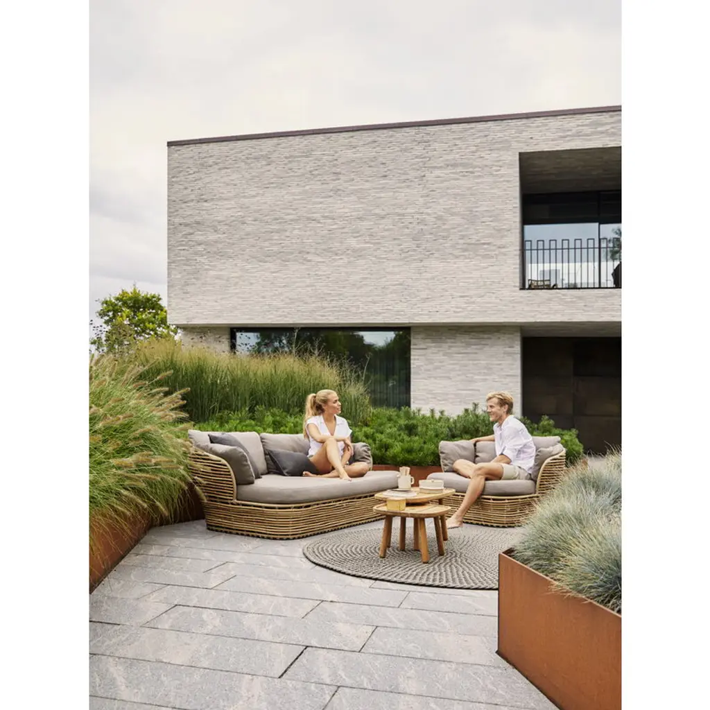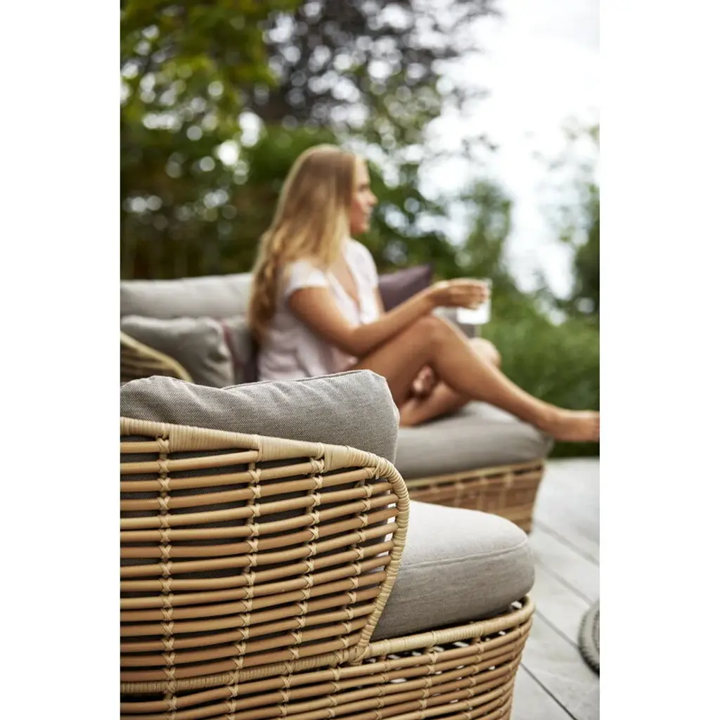 Cane-line’s Basket outdoor sofa offers a cozy spot for enjoying lazy summer days on the balcony or in the garden – the deep seat is perfect for curling up with a good book and a refreshing drink. Created by Søren Rose Studio, the design is inspired by traditional wicker furniture yet realized with durable materials that can withstand varying weather conditions: the sofa’s steel frame is encapsuled by weatherproof Cane-line Weave, Cane-line’s own synthetic rattan-style material, and cushioned with comfy pillows specially designed for outdoor use – after a rainshower, the cushions will be dry and plush again in approximately one hour.