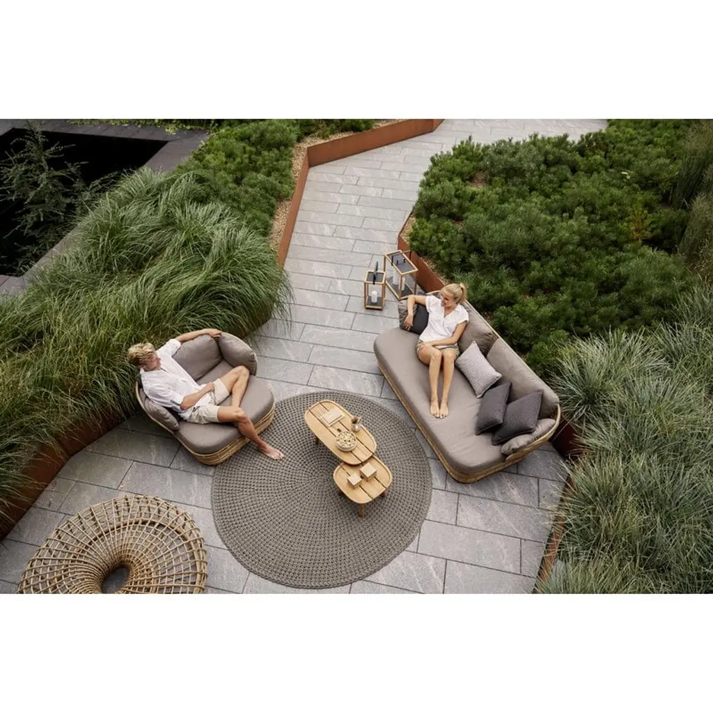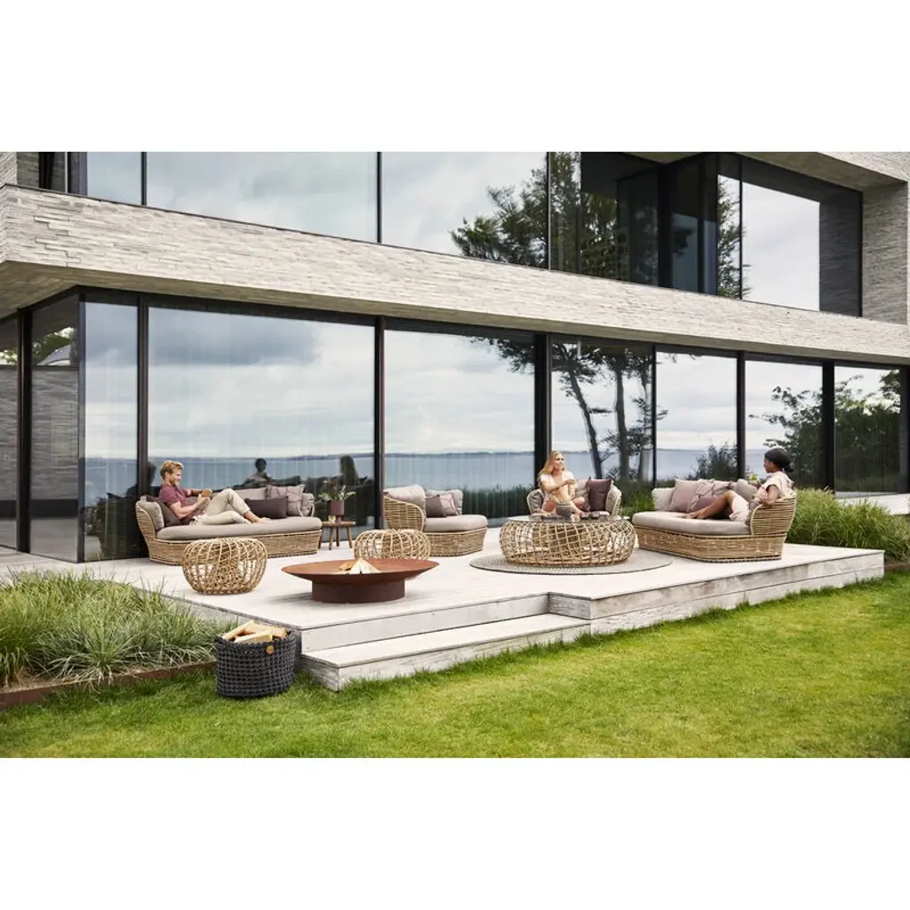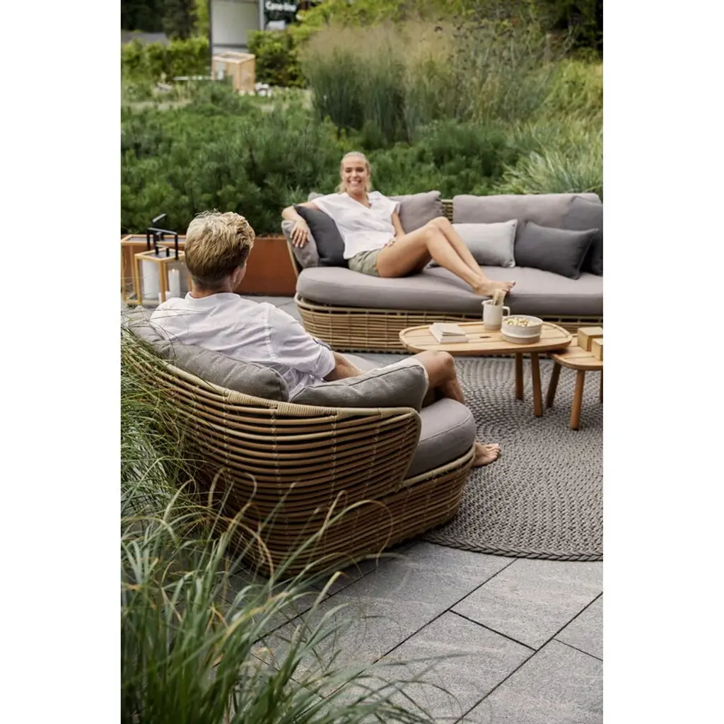 Cane-line’s Basket outdoor sofa offers a cozy spot for enjoying lazy summer days on the balcony or in the garden – the deep seat is perfect for curling up with a good book and a refreshing drink. Created by Søren Rose Studio, the design is inspired by traditional wicker furniture yet realized with durable materials that can withstand varying weather conditions: the sofa’s steel frame is encapsuled by weatherproof Cane-line Weave, Cane-line’s own synthetic rattan-style material, and cushioned with comfy pillows specially designed for outdoor use – after a rainshower, the cushions will be dry and plush again in approximately one hour.