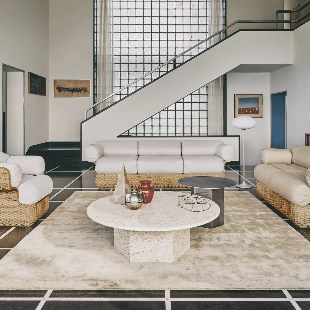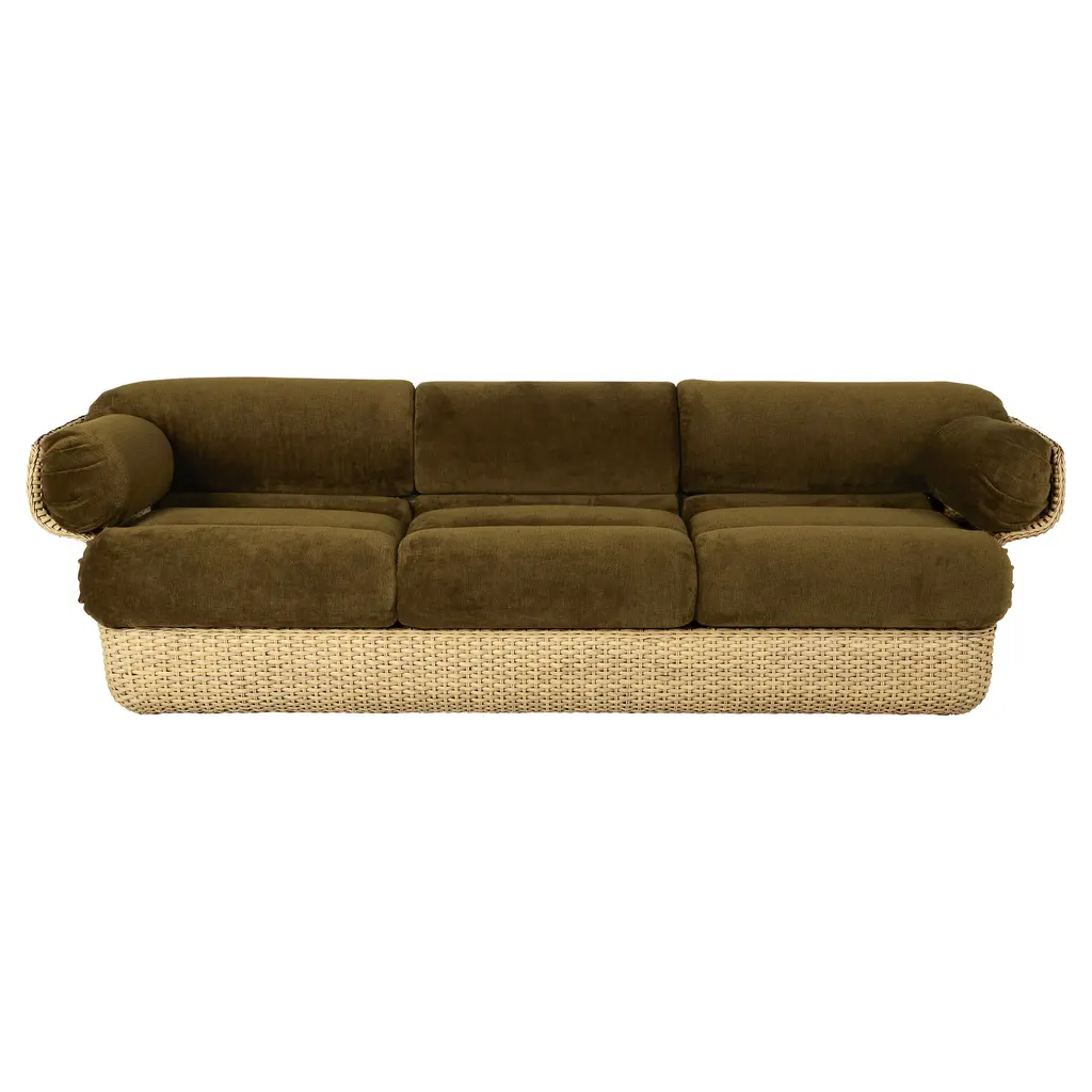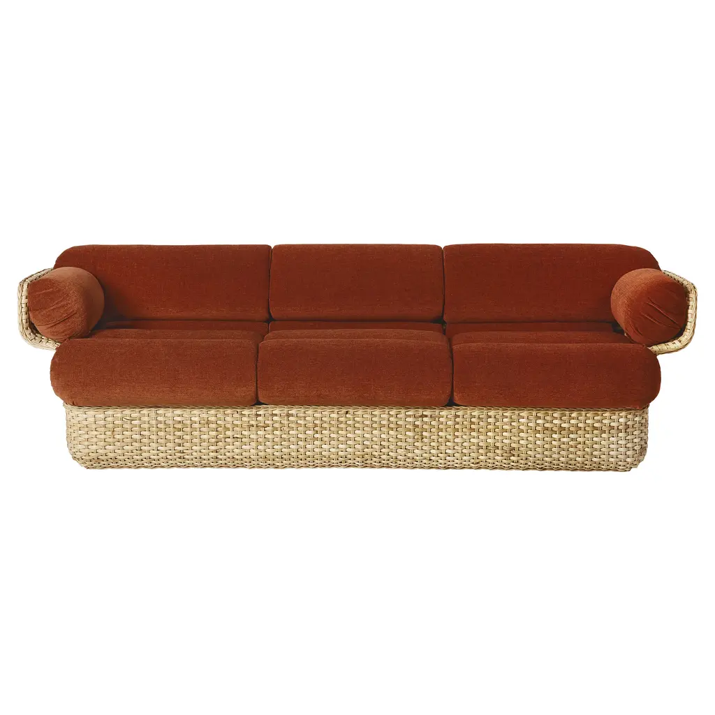 Experience the art of hand-woven rattan with the Basket 3 Seater Sofa from Gubi. Crafted with a sturdy steel core, this sofa offers both strength and sustainability, while its unique form adds a touch of elegance to any space. With interlaced strips and oval stakes, each piece is a testament to the skill and craftsmanship of the makers. Highlights