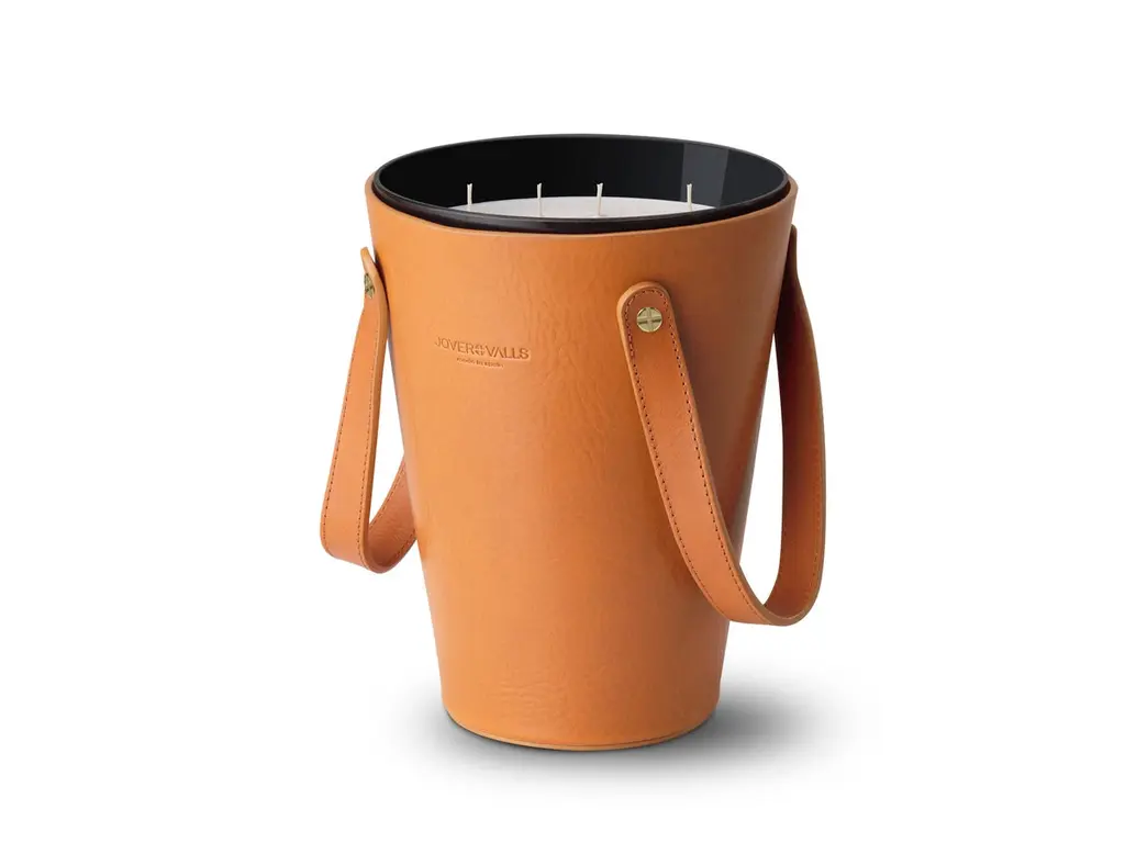 We introduce our leather candleholder’s collection designed at our atelier, hand-made by leather artisans using top grade European cowhides that become sub-product from food industry, vegetable tanned using waxes, tree barks and natural pigments for dyeing. Slightly diverse markings that may occur, show the seal of the craftsman manufacturing. Our leathers pass over a tumbled process that praises the natural grain pattern and does not have a uniform grain structure, the grain structure of skins varies and skins within the same production batch differ from one to the other. Our scented bespoke candle collection is hand-poured in Spain, following a centennial artisan formula that combines smoke-free vegetable waxes, cotton wick and genuine aromas, on a hand-blown glass case, obtaining a sustainable and one-of-a-kind product. Our candleholders and candles are presented as a decorative home accessory, choose the ideal combination for your spaces, available in 2 different sizes, 3 designs, 5 leather main colors and 4 aromas. A combination of highly scented and refined artistic craftsmanship to make the perfect decorative piece to adorn any space.Sizes:123 oz. / 7.7 lb. (3500 gr.). Burning time 200 hours. 4 cotton wicks. 8"x10,5" (20x27 cm.)Designs:JARR – BUCKET – BASKETMain leather colors:Natural Tobacco – Cognac – Dark Brown – Navy Blue – BlackAroma:WANDERLUST - Fresh spices, Saddle & CedarFragrance Family: Green & SpicyScent Type: Natural & AromaticFragrance Notes: Top: Cedarleaf oil, Pinus Sylvestris, Fresh Tobacco Leaf Heart: Nutmeg, Black Pepper, Waxed Leather, Wild Thyme Base: Patchouli, VanillaFragrance description: Is a mindful journey where senses are fully open to stimulating and natural fragrances, familiar perfume with a fresh lavish accent.How to Use:DO’sTo be displayed and enjoyed at home, indoor use only. For the first time you use your scented candle, let it burn for two hours until all the wax on the surface becomes liquid, doing this will prevent the wax from tunneling down around the wick and for an ulterior clean burn. Should black smoke appear, trim the wick regularly with a wick trimmer no longer than 1/4" (6mm). When lit, place on a heat resistant mat. When extinguishing the candle, check the wick is upright and centered, this will ensure the candle burns evenly right to the bottom of the glass. Burn the candle between 30 minutes and 2 hours for perfect burning. Allow to solidify before relighting. May produce an allergic reaction.DONT’sBurn within sight, never leave a burning candle unattended. Keep out of reach of children and pets. Keep away from combustibles. Do not burn near draughts and do not move candle when lit. Do not burn down to the bottom, or on or near anything that can catch fire. Do not ingest.