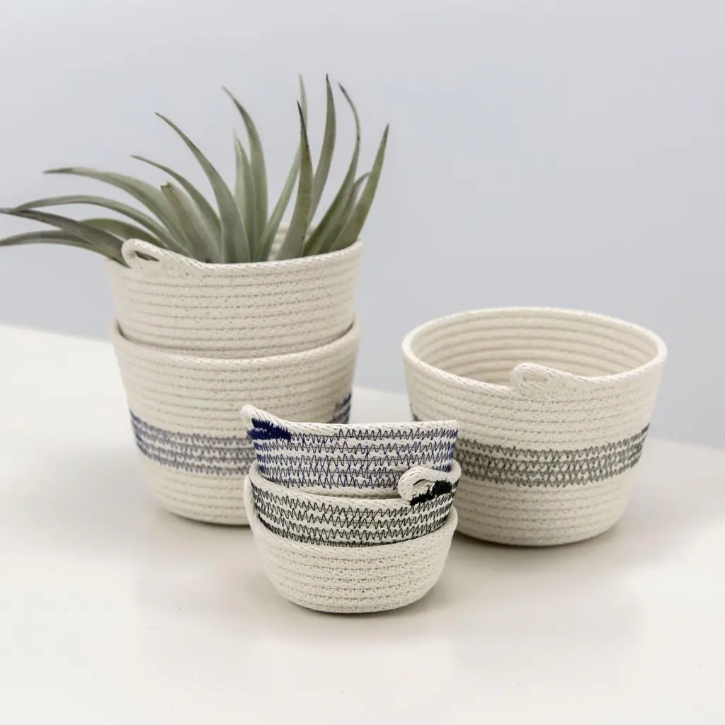 These handcrafted cord baskets are lightweight yet durable. Pair with DESK, SHELF or PEGS to display air plants, succulents, office supplies or loose change in style. Made in the USA by Enamel Project.