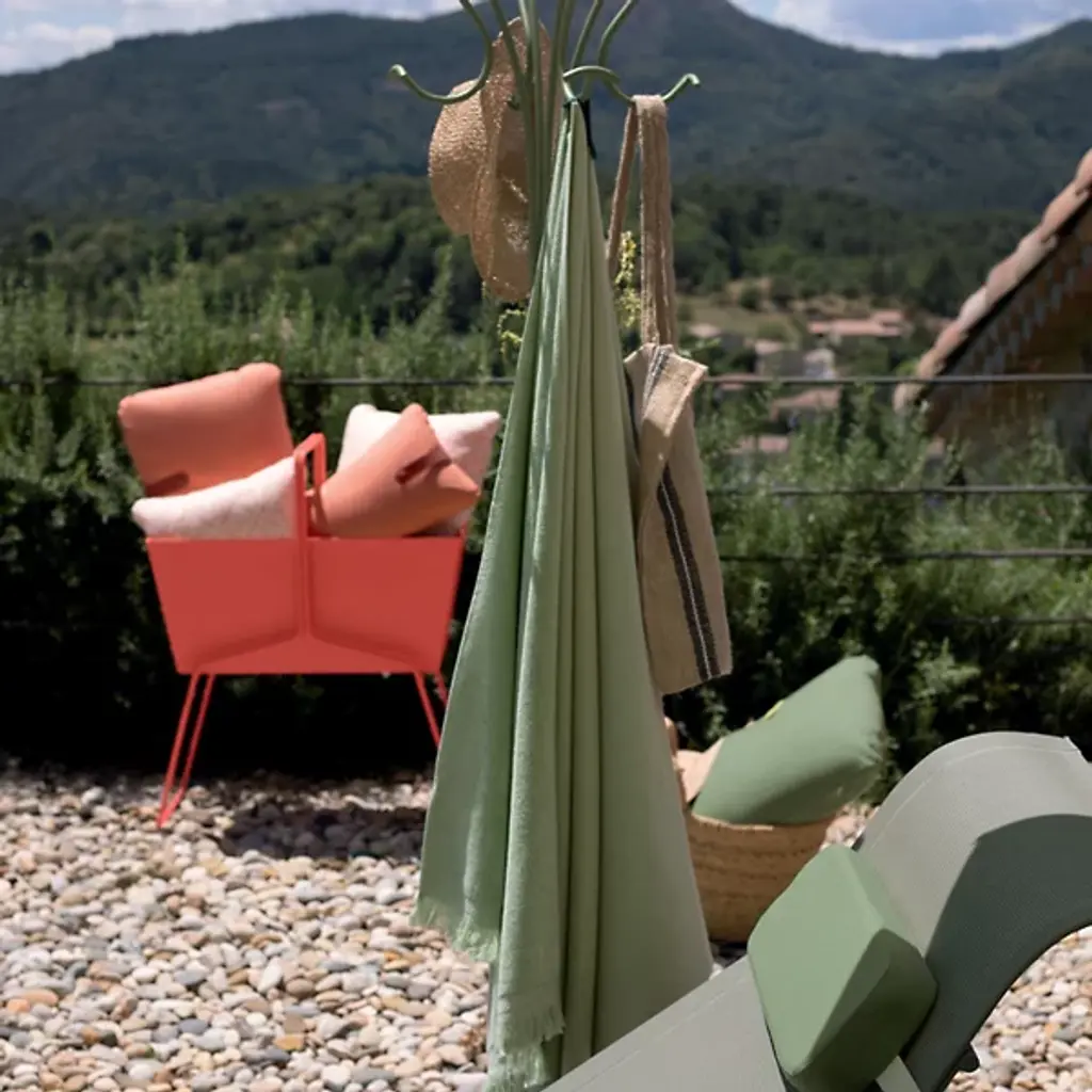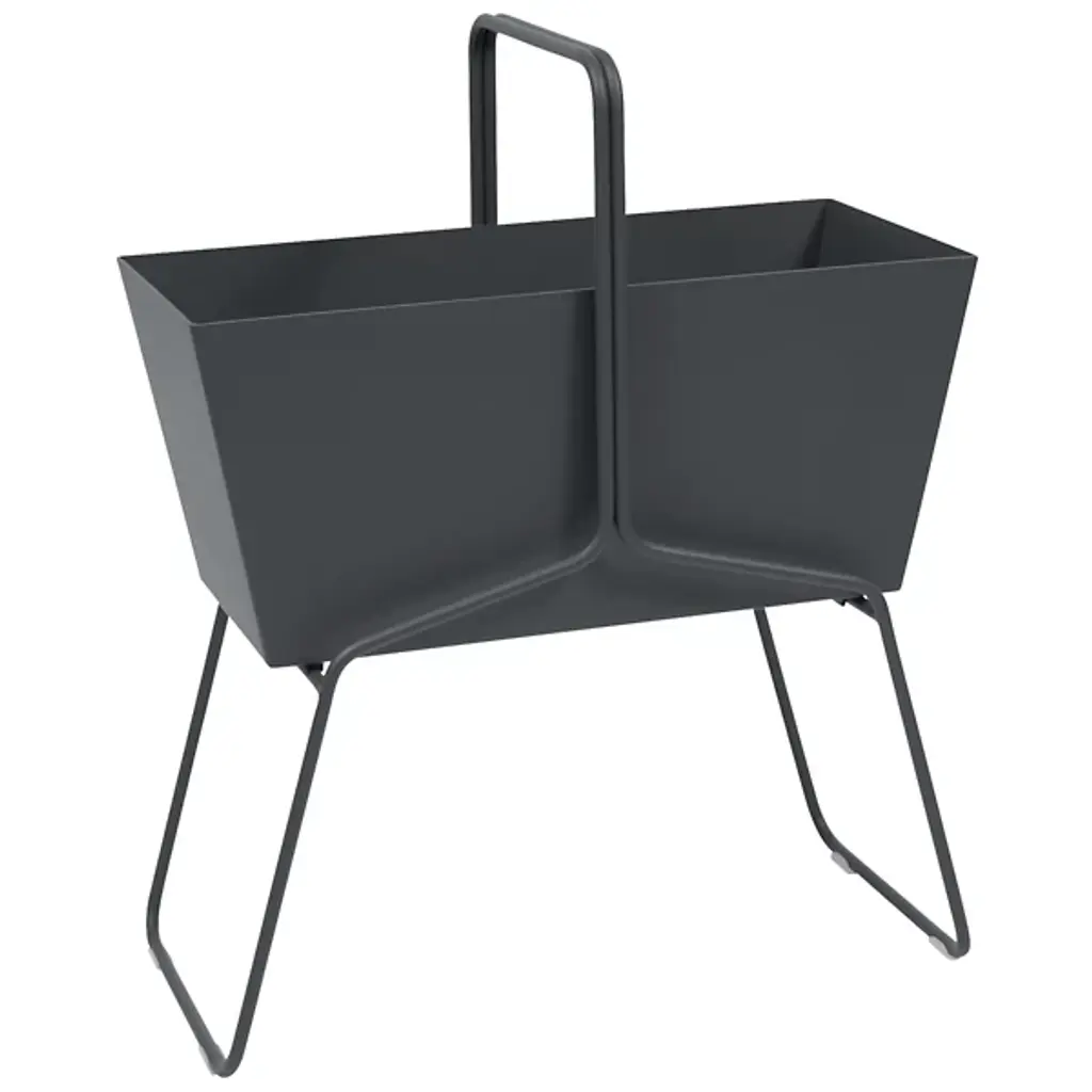 Keep plants within easy reach in the Fermob Basket High Planter. It features a simple, graphic planter made out of aluminum that can be set on a coordinating steel rod frame. While it is recommended that plants stay in their original containers, you can put dirt in; just make sure there won't be any standing water (which is helped by 2 drainage holes).