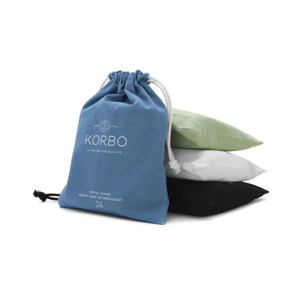Korbo Basket Liner brings additional functionality to the popular Korbo metal wire baskets. You can use the Basket Liner to hide paper, toys, scarfs – anything. The Basket Liner can also be used as a small laundry bag. Use the Korbo Basket Liner 16.91 qt (16 l) together with Korbo Bin 16 and Bucket 16 wire baskets. The Basket Liner is made of cotton , and its capacity is 16 liters.
