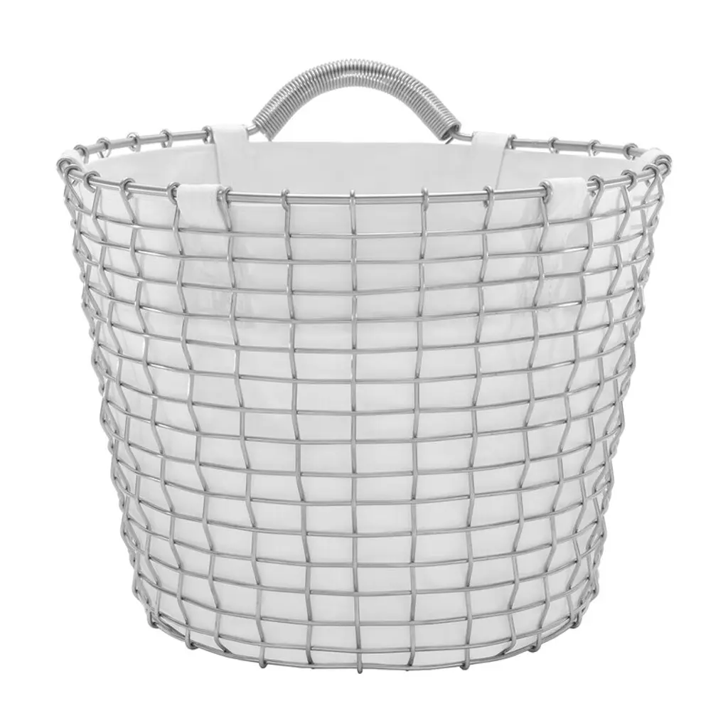 Korbo Basket Liner brings additional functionality to the popular Korbo metal wire baskets. You can use the Basket Liner to hide paper, toys, scarfs – anything. The Basket Liner can also be used as a small laundry bag. Use the Korbo Basket Liner 16.91 qt (16 l) together with Korbo Bin 16 and Bucket 16 wire baskets. The Basket Liner is made of cotton, and its capacity is 16 liters.