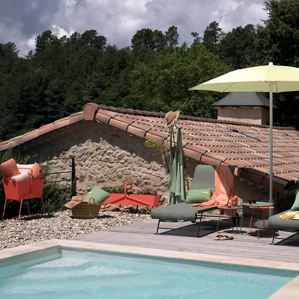 A long and low place for plants. The Fermob Basket Long Planter features a lengthy aluminum planter set in a steel rod frame, which acts as both planter stand and a carrier. Two drainage holes at either end of the planter help prevent standing water, whether plants are kept in their original containers (as recommended) or planted in soil.