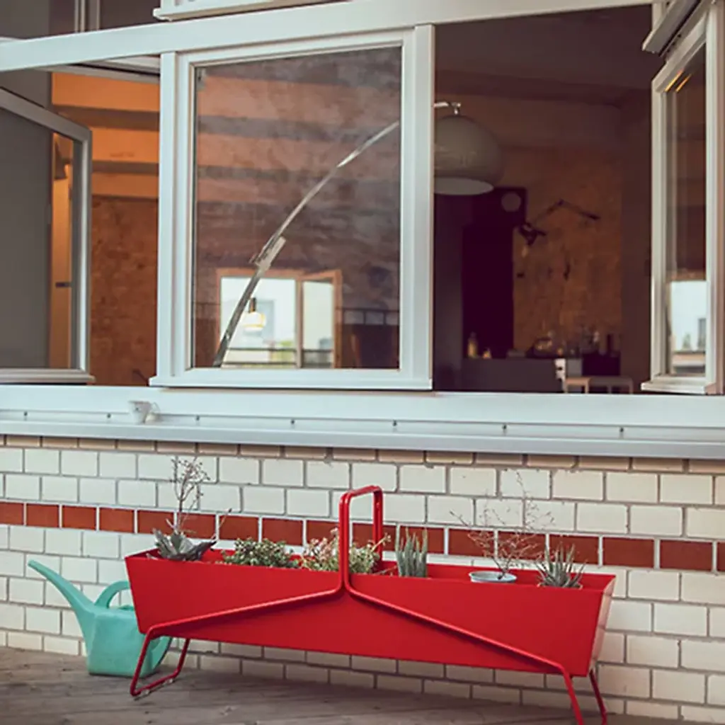 A long and low place for plants. The Fermob Basket Long Planter features a lengthy aluminum planter set in a steel rod frame, which acts as both planter stand and a carrier. Two drainage holes at either end of the planter help prevent standing water, whether plants are kept in their original containers (as recommended) or planted in soil.