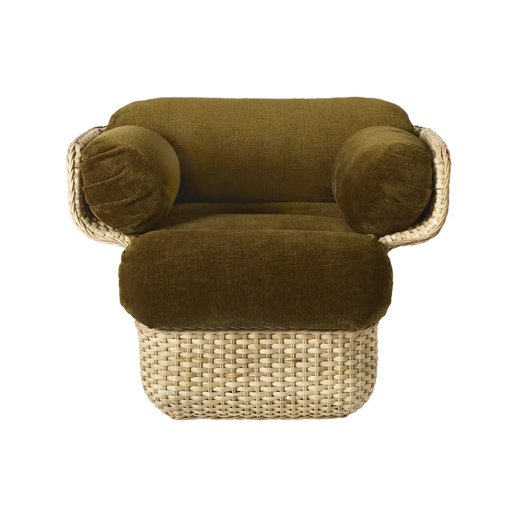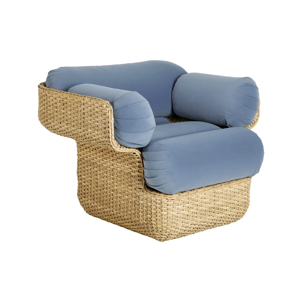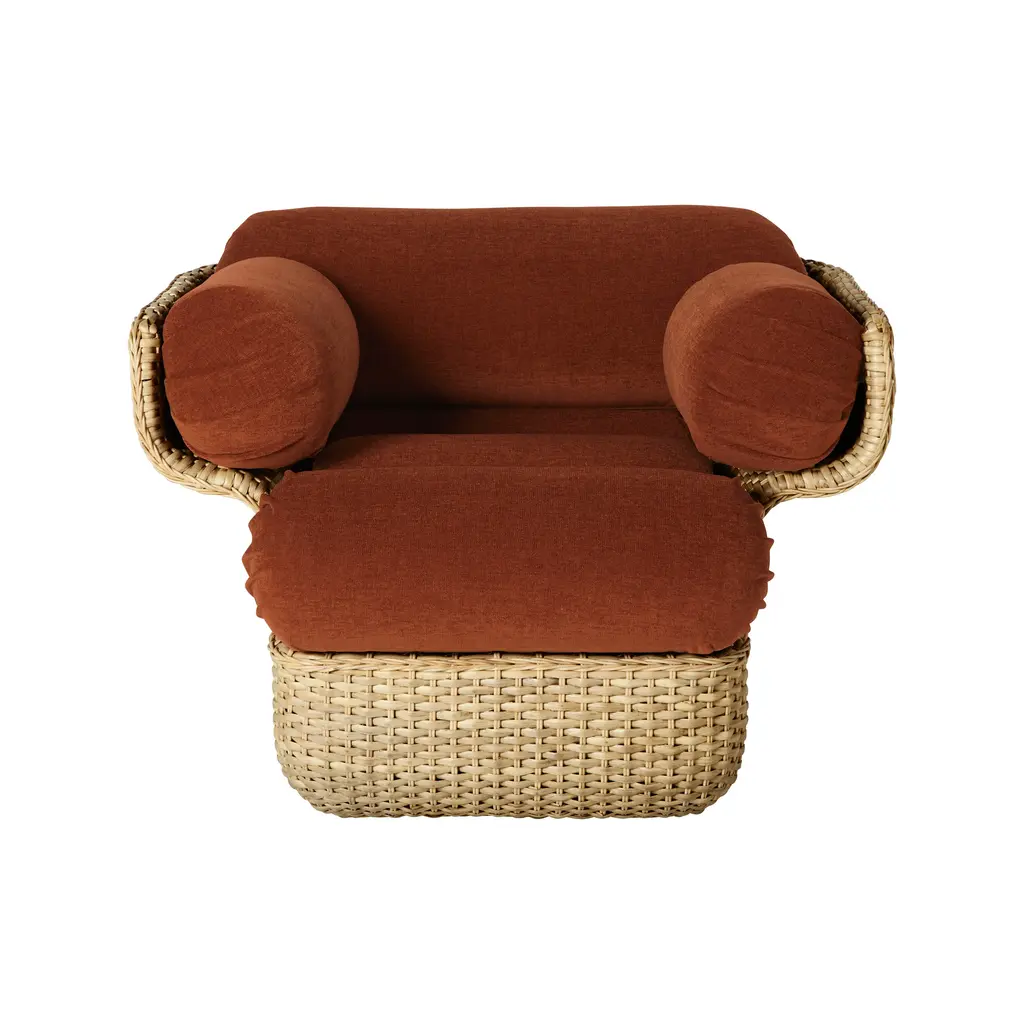 The Basket Lounge Chair from Gubi is a modern take on traditional rattan basket weaving. Its steel skeleton construction provides strength and stability, while the hand-woven rattan skin adds a touch of skilled craftsmanship. Topped with plush cushions wrapped in removable covers, this lounge chair adds a cozy, retro touch to any interior. Highlights