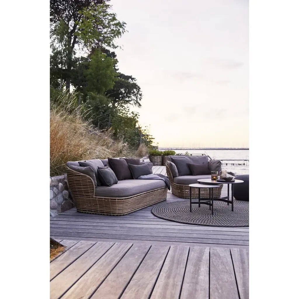 Cane-line’s Basket outdoor lounge chair offers a cozy spot for enjoying lazy summer days on the balcony or in the garden – the deep seat is perfect for curling up with a good book and a refreshing drink. Created by Søren Rose Studio, the design is inspired by traditional wicker furniture yet realized with durable materials that can withstand varying weather conditions: the chair’s steel frame is encapsulated by weatherproof Cane-line Weave, Cane-line’s own synthetic rattan-style material, and cushioned with comfy pillows complete with the Cane-line QuickDry and Airflow systems, specially created for outdoor use – after a rain shower, the cushions will be dry and plush again in approximately one hour.