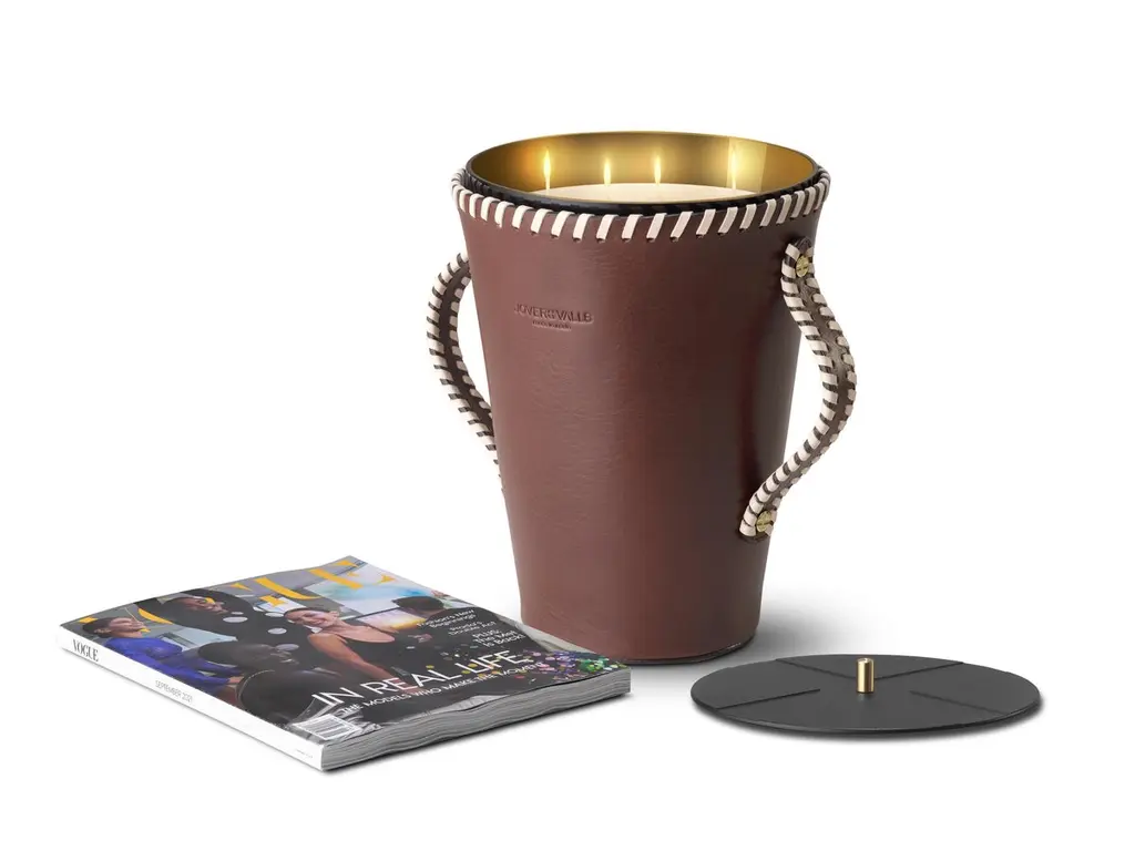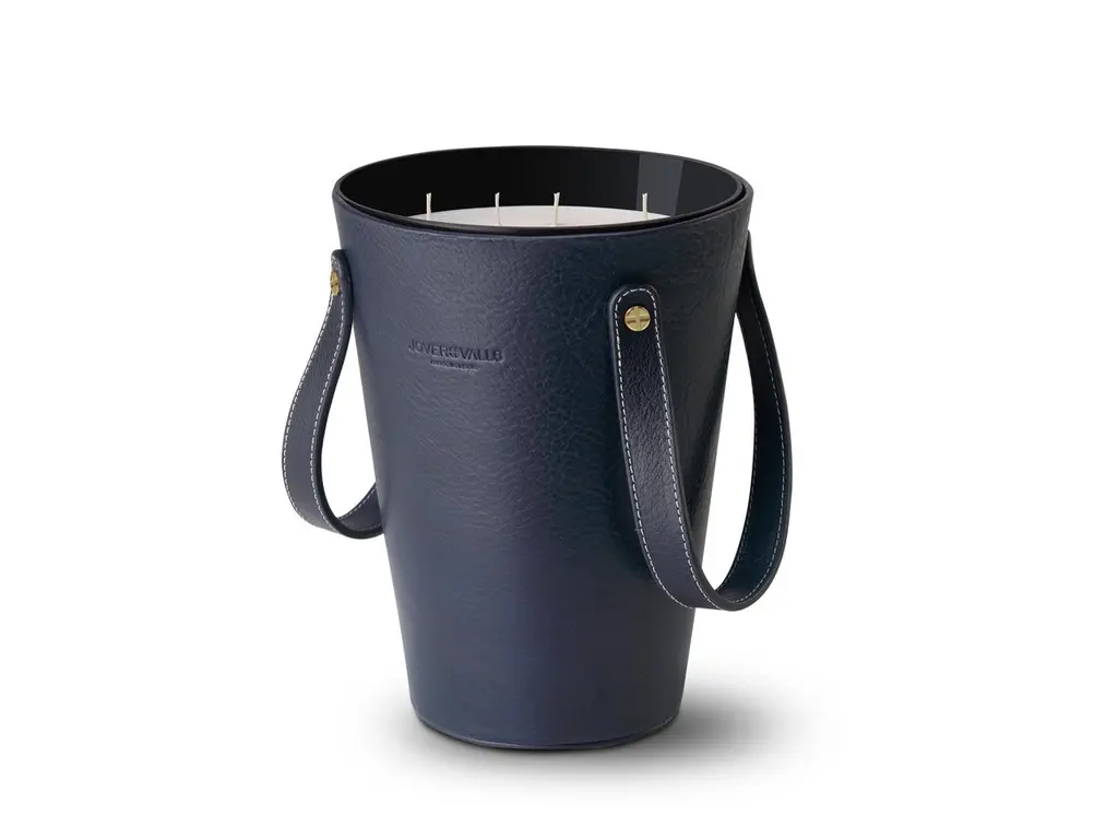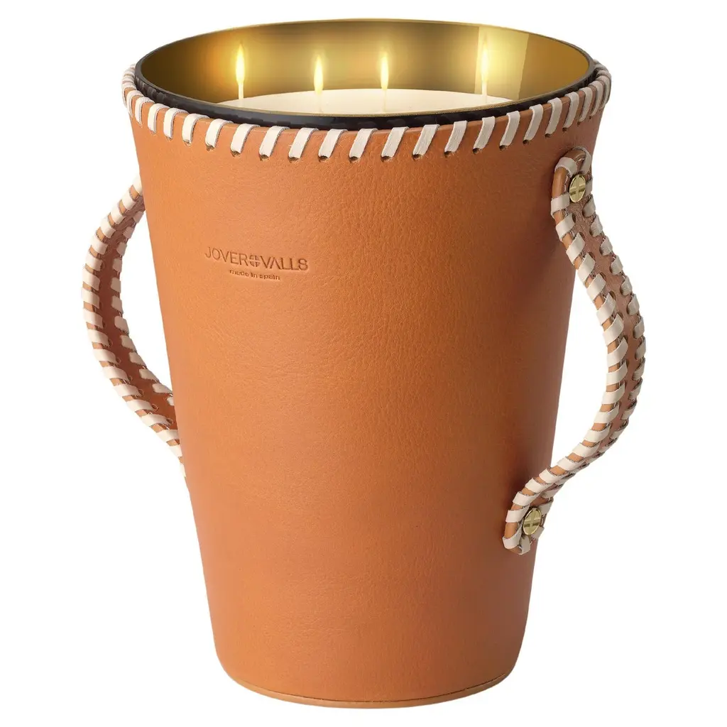 We introduce our leather candleholder’s collection designed at our atelier, hand-made by leather artisans using top grade European cowhides that become sub-product from food industry, vegetable tanned using waxes, tree barks and natural pigments for dyeing. Slightly diverse markings that may occur, show the seal of the craftsman manufacturing. Our leathers pass over a tumbled process that praises the natural grain pattern and does not have a uniform grain structure, the grain structure of skins varies and skins within the same production batch differ from one to the other. Our scented bespoke candle collection is hand-poured in Spain, following a centennial artisan formula that combines smoke-free vegetable waxes, cotton wick and genuine aromas, on a hand-blown glass case, obtaining a sustainable and one-of-a-kind product. Our candleholders and candles are presented as a decorative home accessory, choose the ideal combination for your spaces, available in 2 different sizes, 3 designs, 5 leather main colors and 4 aromas. A combination of highly scented and refined artistic craftsmanship to make the perfect decorative piece to adorn any space.Sizes:123 oz. / 7.7 lb. (3500 gr.). Burning time 200 hours. 4 cotton wicks. 8"x10,5" (20x27 cm.)Designs:JARR – BUCKET – BASKETMain leather colors:Natural Tobacco – Cognac – Dark Brown – Navy Blue – BlackAroma:WANDERLUST - Fresh spices, Saddle & CedarFragrance Family: Green & SpicyScent Type: Natural & AromaticFragrance Notes: Top: Cedarleaf oil, Pinus Sylvestris, Fresh Tobacco Leaf Heart: Nutmeg, Black Pepper, Waxed Leather, Wild Thyme Base: Patchouli, VanillaFragrance description: Is a mindful journey where senses are fully open to stimulating and natural fragrances, familiar perfume with a fresh lavish accent.How to Use:DO’sTo be displayed and enjoyed at home, indoor use only. For the first time you use your scented candle, let it burn for two hours until all the wax on the surface becomes liquid, doing this will prevent the wax from tunneling down around the wick and for an ulterior clean burn. Should black smoke appear, trim the wick regularly with a wick trimmer no longer than 1/4" (6mm). When lit, place on a heat resistant mat. When extinguishing the candle, check the wick is upright and centered, this will ensure the candle burns evenly right to the bottom of the glass. Burn the candle between 30 minutes and 2 hours for perfect burning. Allow to solidify before relighting. May produce an allergic reaction.DONT’sBurn within sight, never leave a burning candle unattended. Keep out of reach of children and pets. Keep away from combustibles. Do not burn near draughts and do not move candle when lit. Do not burn down to the bottom, or on or near anything that can catch fire. Do not ingest.