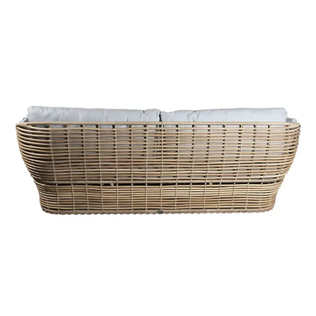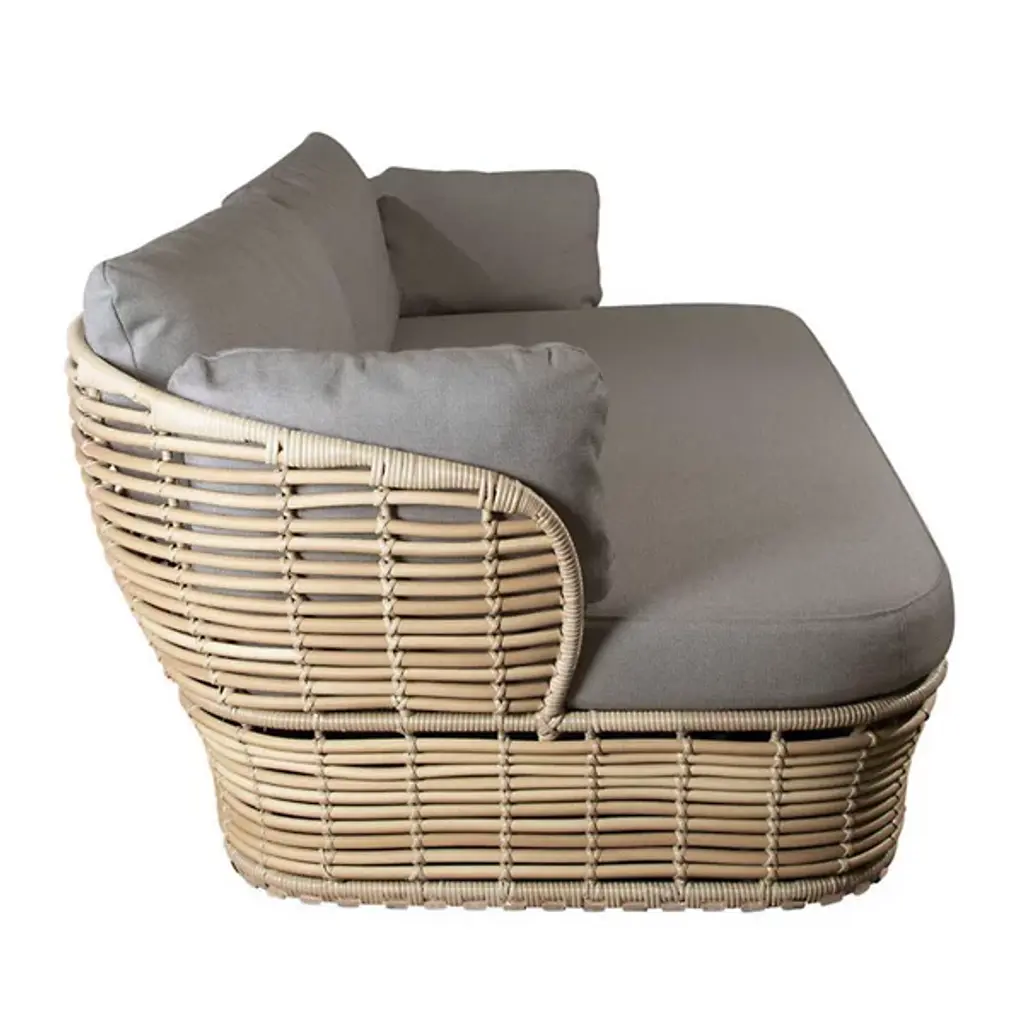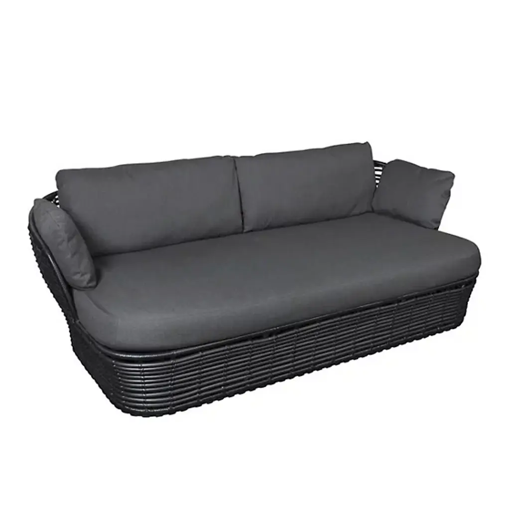 Roomy, airy, and ornate like a traditionally handcrafted basket. Entertain multiple guests or achieve a pleasant daybed for one with the Basket Outdoor 2-Seater Sofa from Cane-line. Filled with personality, this modern sofa brings to mind classic wicker furniture. It starts with a steel frame wrapped in a weatherproof weave. The weave guides the eyes and pleases the body with airy contours. Generous cushions nestle inside with softness at all corners. These cushions dry quickly and sport an airy touch.