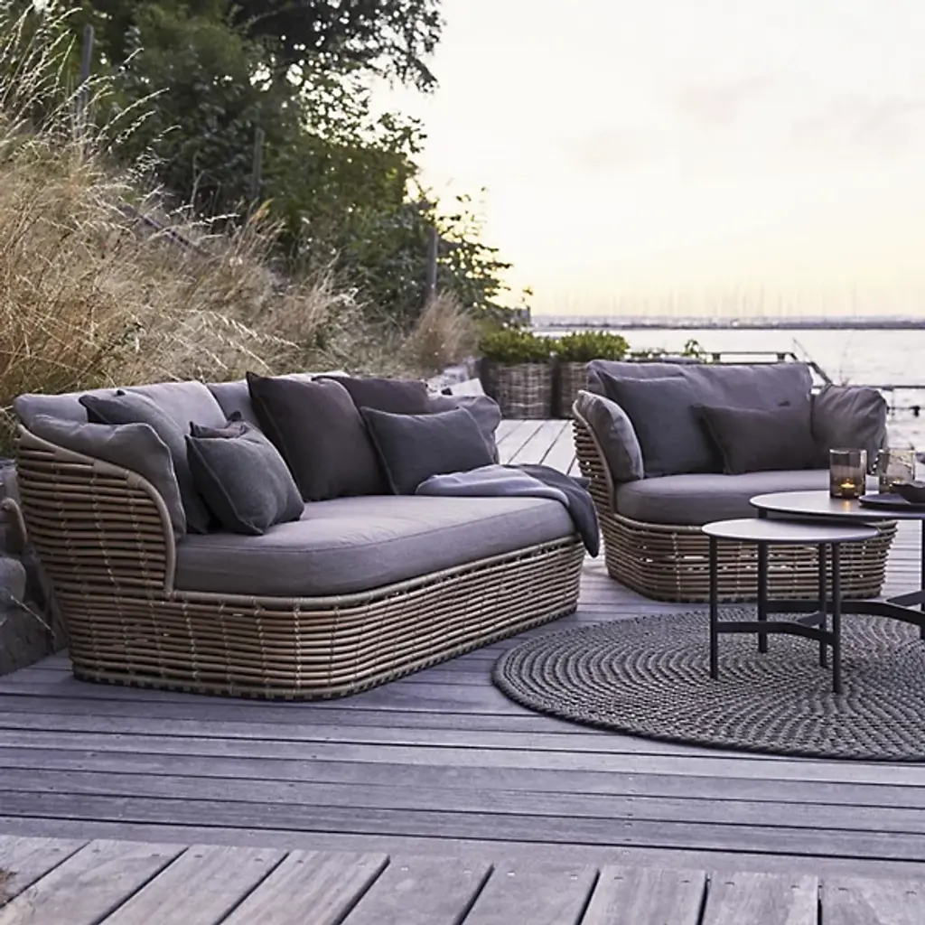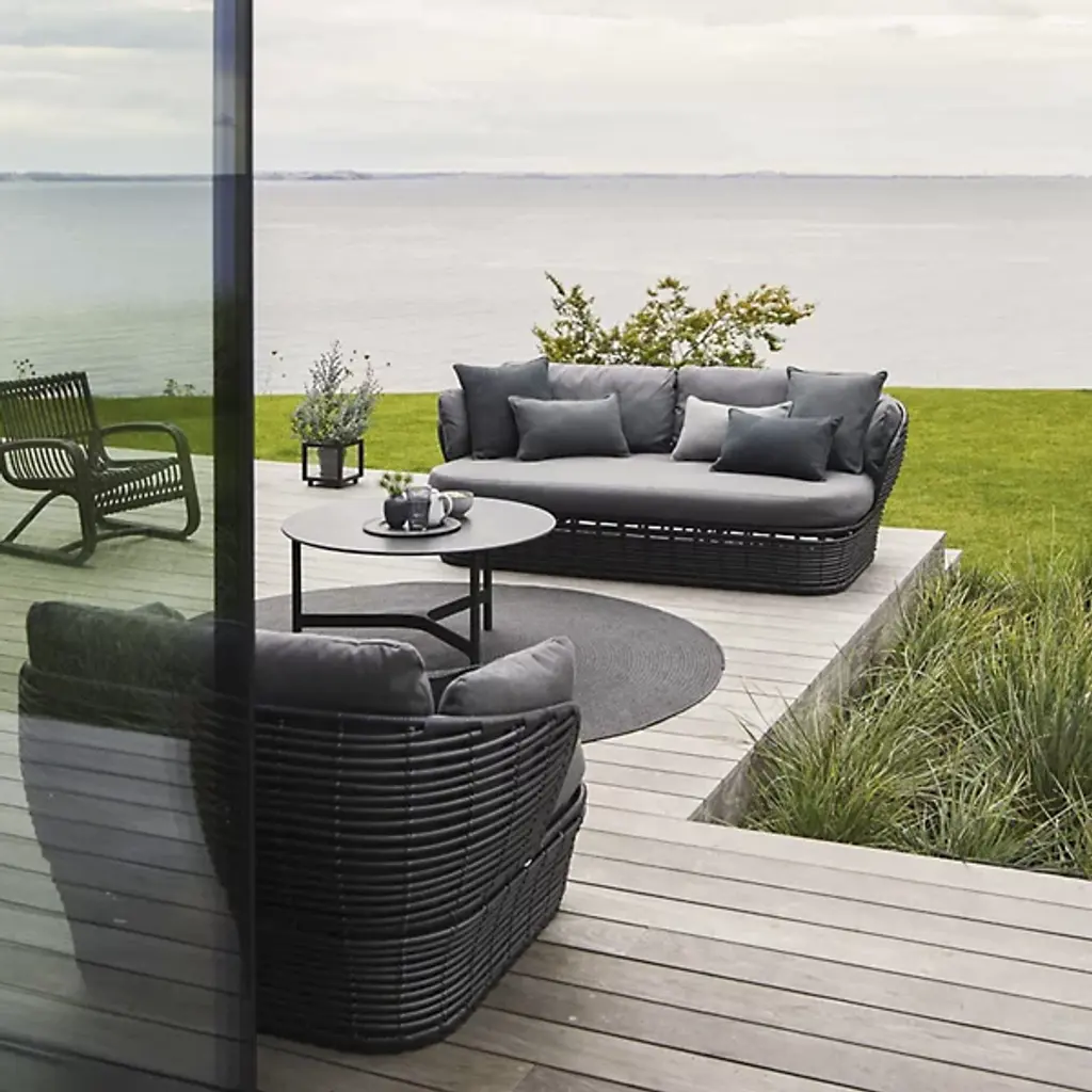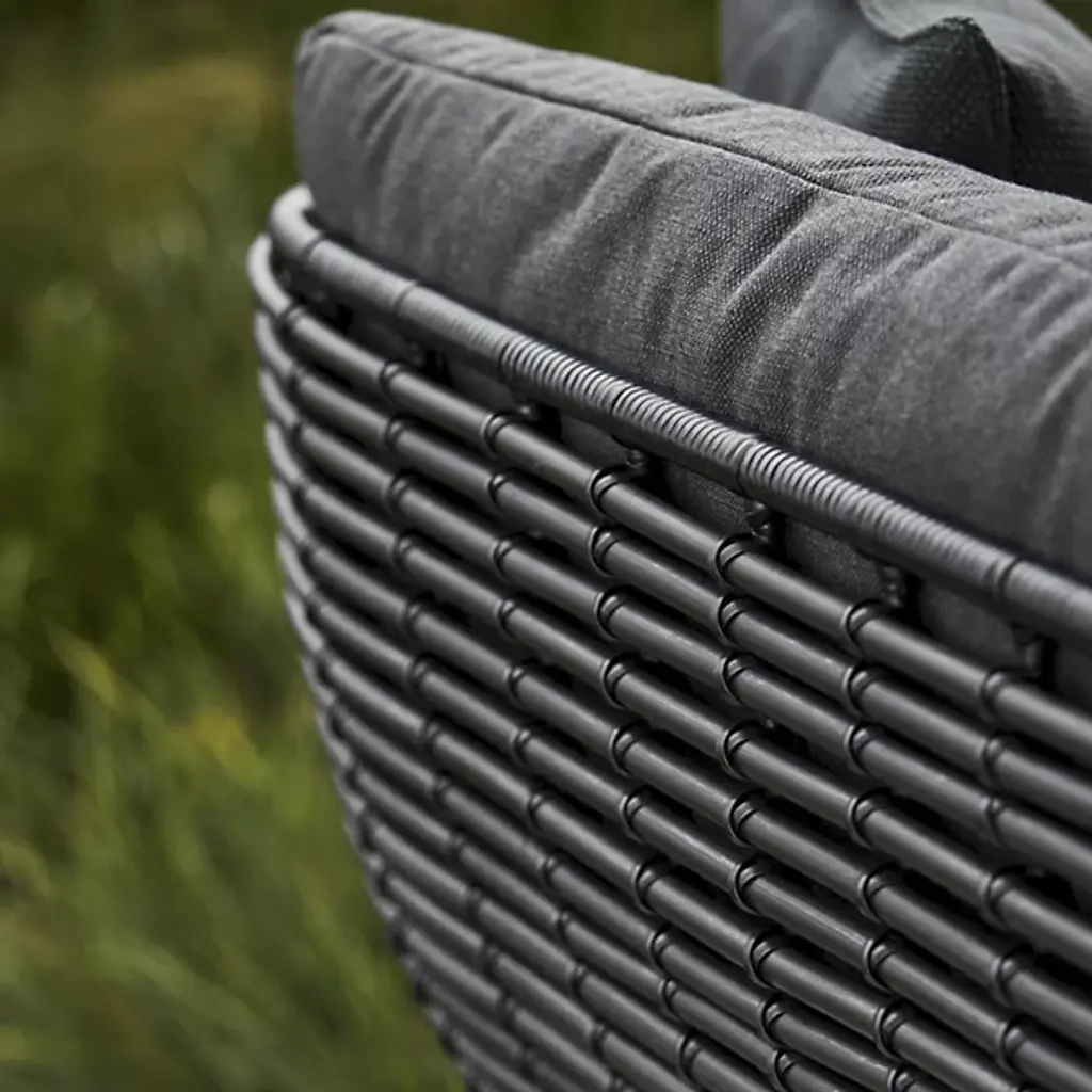 Roomy, airy, and ornate like a traditionally handcrafted basket. Entertain multiple guests or achieve a pleasant daybed for one with the Basket Outdoor 2-Seater Sofa from Cane-line. Filled with personality, this modern sofa brings to mind classic wicker furniture. It starts with a steel frame wrapped in a weatherproof weave. The weave guides the eyes and pleases the body with airy contours. Generous cushions nestle inside with softness at all corners. These cushions dry quickly and sport an airy touch.