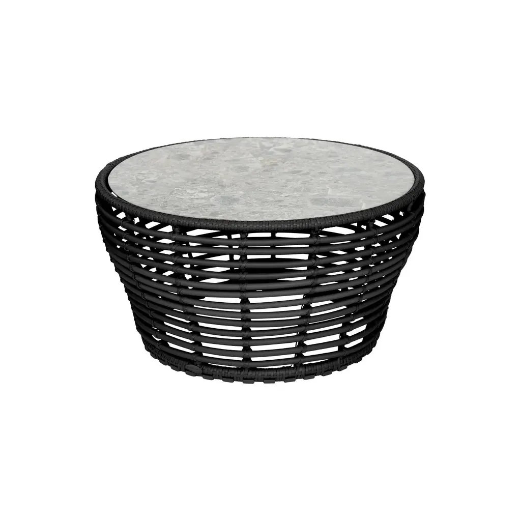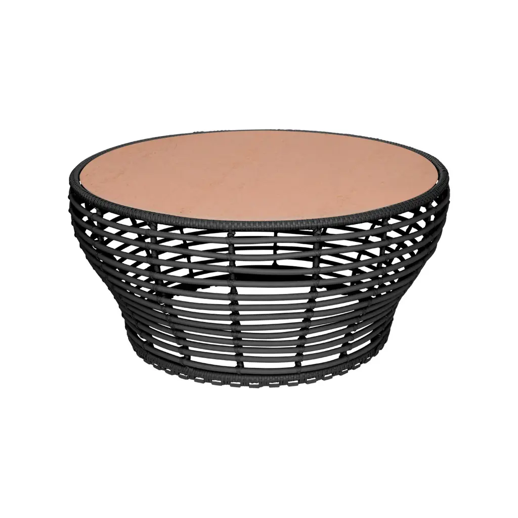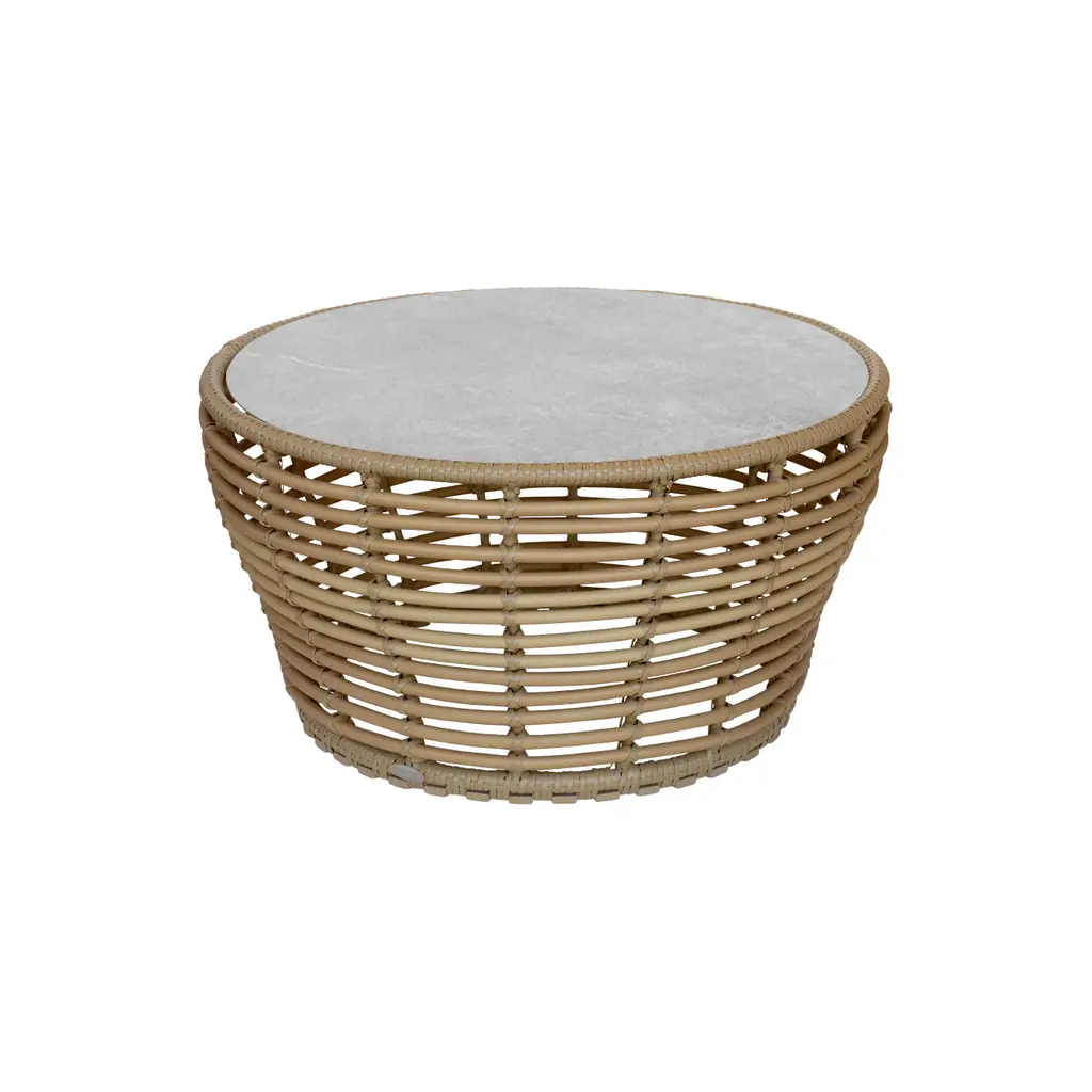 The Basket Outdoor Coffee Table, crafted in collaboration with Søren Rose Studio, blends organic curves with refined materials. Featuring a durable Cane-line Weave® wrapped around a hot-dip galvanized steel frame and topped with an elegant ceramic surface, this table offers both resilience and style. Its harmonious design enhances any outdoor lounge, creating a sophisticated focal point that balances softness and modern edge. Highlights