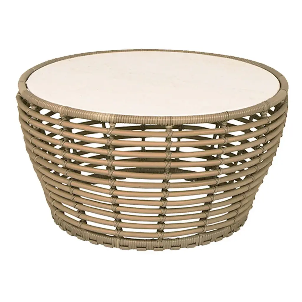 Basket coffee table is designed in collaboration with Sà ¸ren Rose Studio. A coffee table inspired by the nature with its round shapes providing an organic design expression. Basket coffee table is manufactured in the durable Cane-line Weave ® on a hot-dip galvanized steel frame with an elegant ceramic tabletop. The combination of soft curves and edgy ceramic tabletop creates an eye-catching and refined look for your outdoor lounge area. The Basket coffee tables are available in three sizes, which complement each other beautifully.