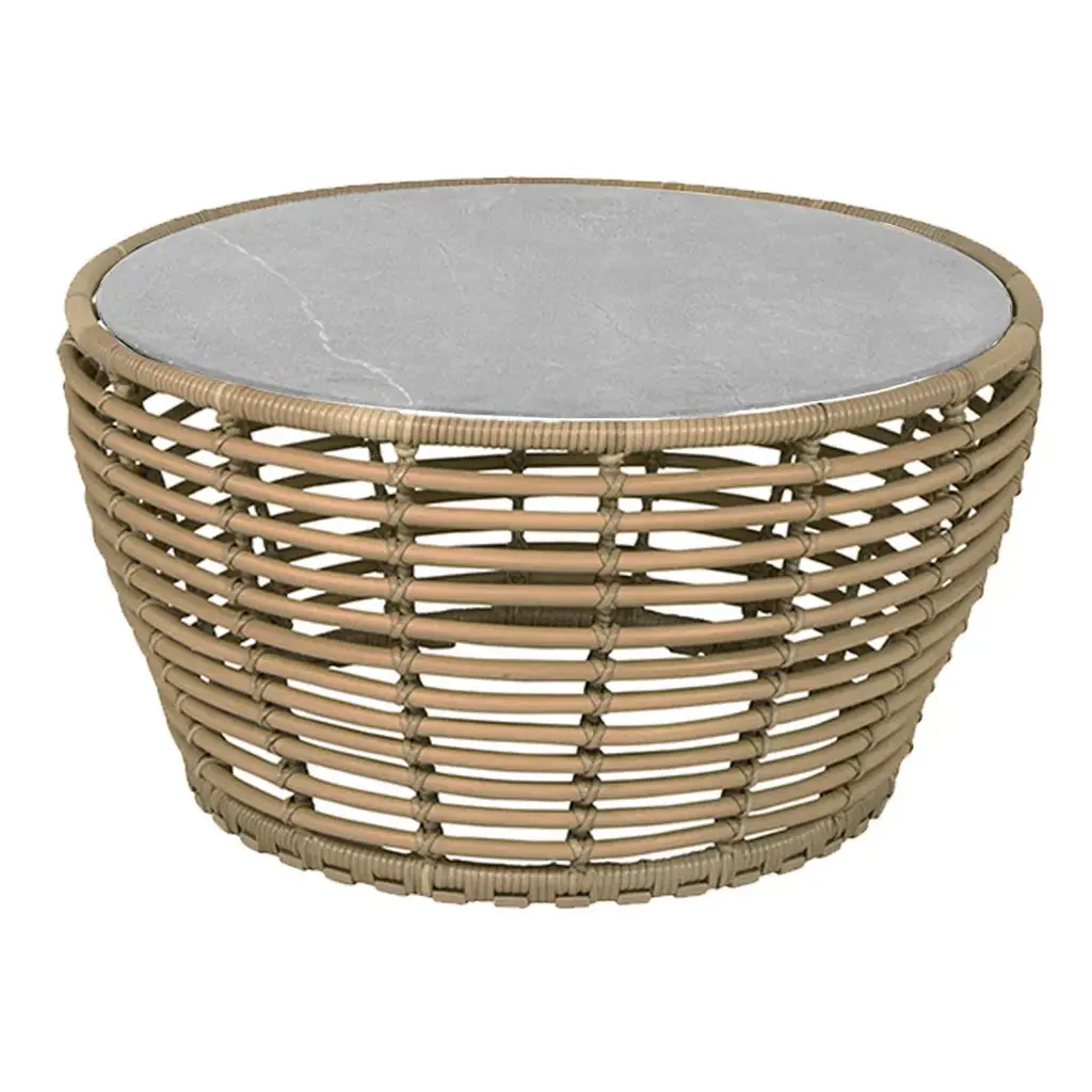 Basket coffee table is designed in collaboration with Sà ¸ren Rose Studio. A coffee table inspired by the nature with its round shapes providing an organic design expression. Basket coffee table is manufactured in the durable Cane-line Weave ® on a hot-dip galvanized steel frame with an elegant ceramic tabletop. The combination of soft curves and edgy ceramic tabletop creates an eye-catching and refined look for your outdoor lounge area. The Basket coffee tables are available in three sizes, which complement each other beautifully.