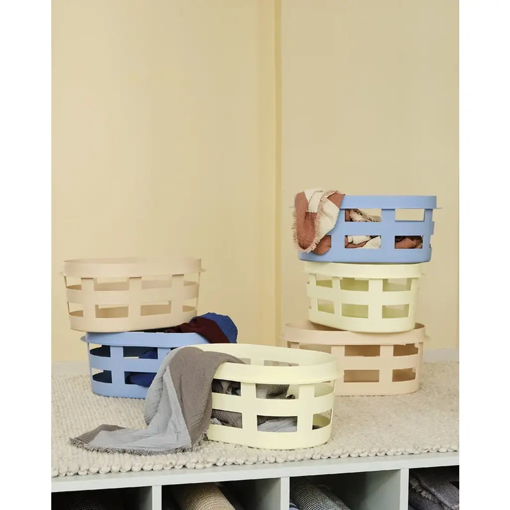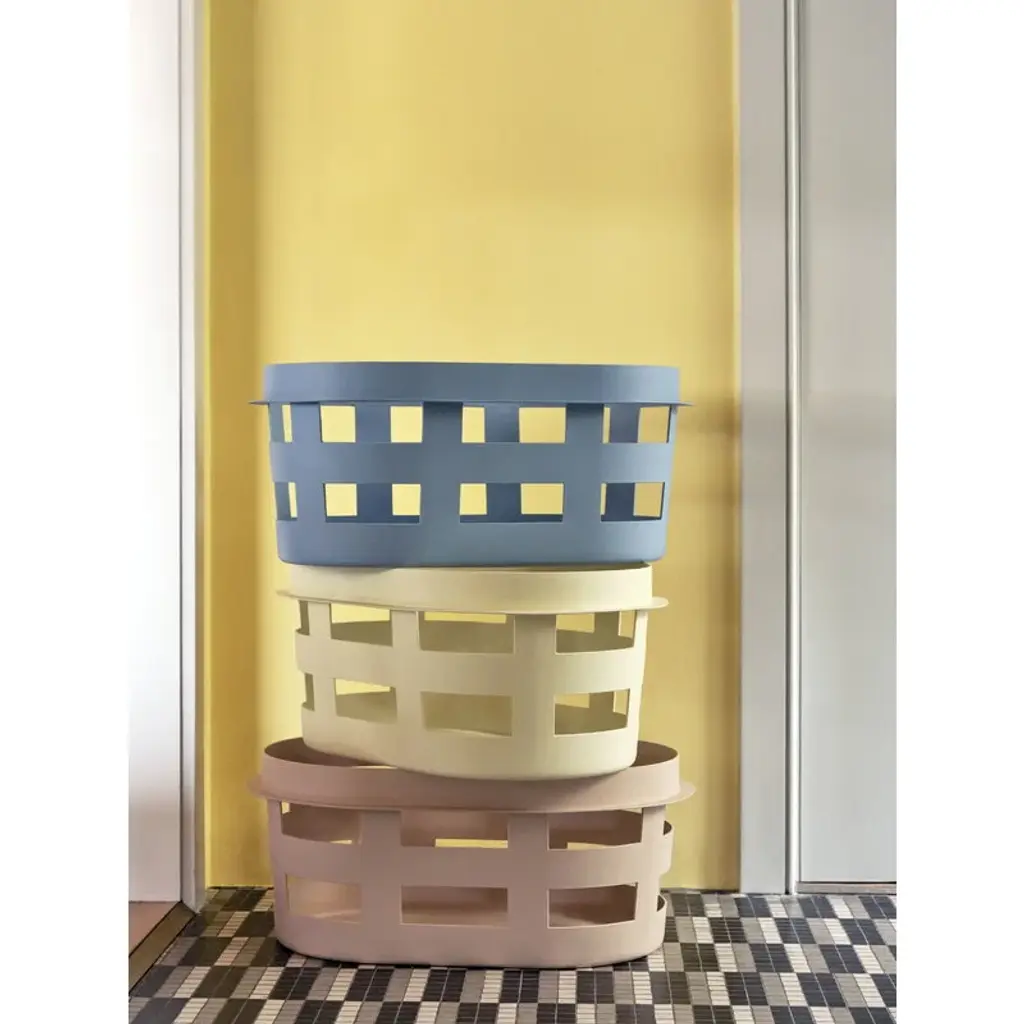 HAY’s appealing storage baskets will keep your utility room tidy and gather well-deserved attention with their contemporary, graphic appearance. Designed by BIG-GAME studio, the plastic basket is not only suitable for laundry but for maintaining the order of all kinds of everyday objects. The baskets are made of recycled polypropylene, and they come in two sizes – pick your favorite or combine several subtle colors! What's more, the small laundry basket fits conveniently on top of the large one.