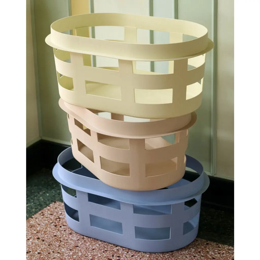 HAY’s appealing storage baskets will keep your utility room tidy and gather well-deserved attention with their contemporary, graphic appearance. Designed by BIG-GAME studio, the plastic basket is not only suitable for laundry but for maintaining the order of all kinds of everyday objects. The baskets are made of recycled polypropylene, and they come in two sizes – pick your favorite or combine several subtle colors! What's more, the small laundry basket fits conveniently on top of the large one.