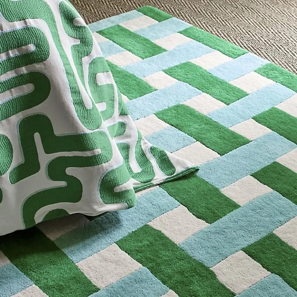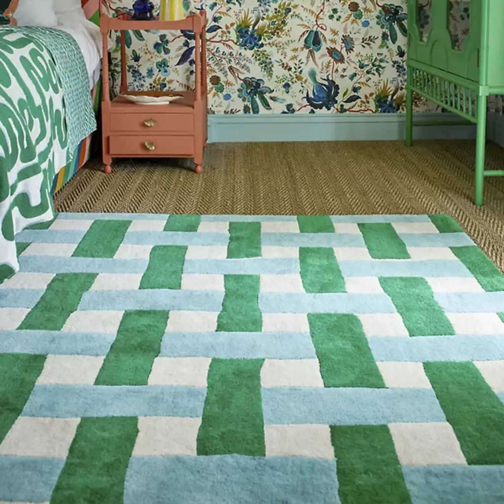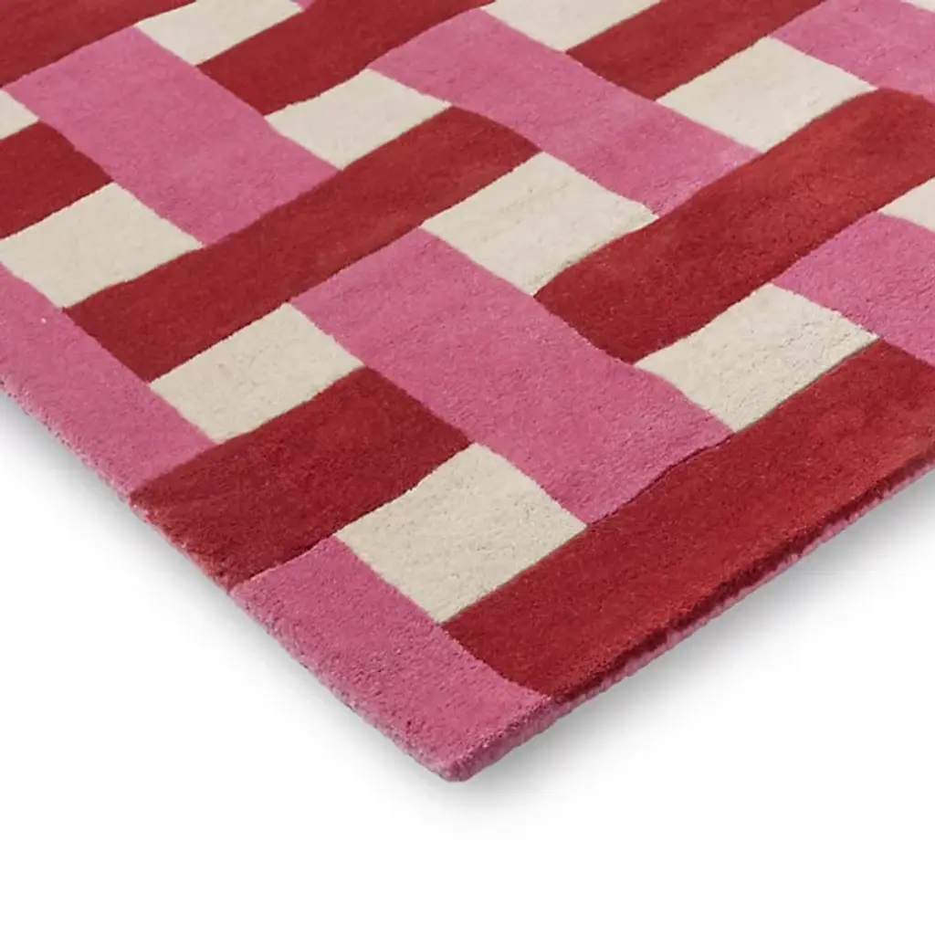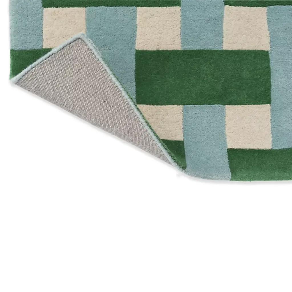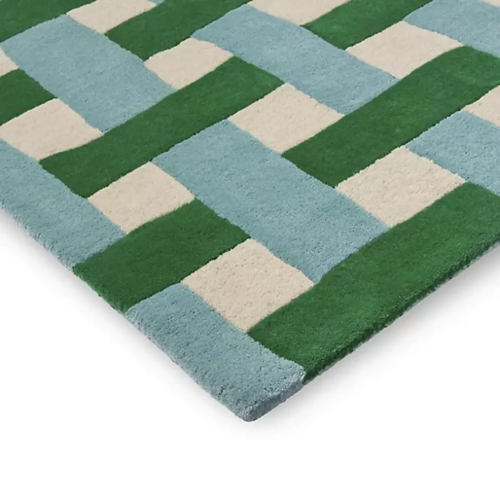 The Basket Weave Area Rug from Harlequin recreates the interlaced pattern of traditional basketry through alternating rectangular blocks. Handtufted from pure new wool in India, this design mimics the over-under weaving technique in visual form rather than actual construction. The checkerboard-like arrangement creates texture through color alternation while maintaining overall pattern regularity. This rug excels in dining rooms under tables where its structured pattern complements furniture lines or in studies and offices where its orderly appearance supports focused work environments.