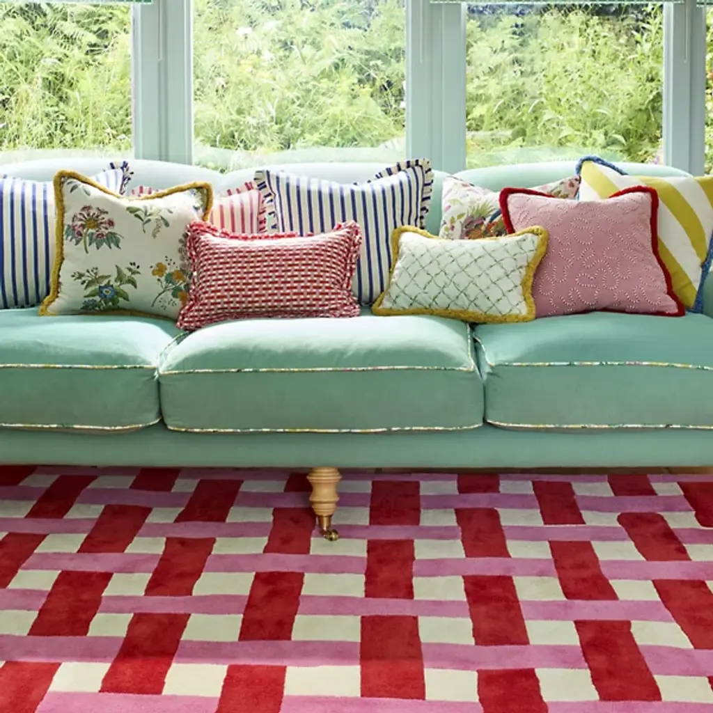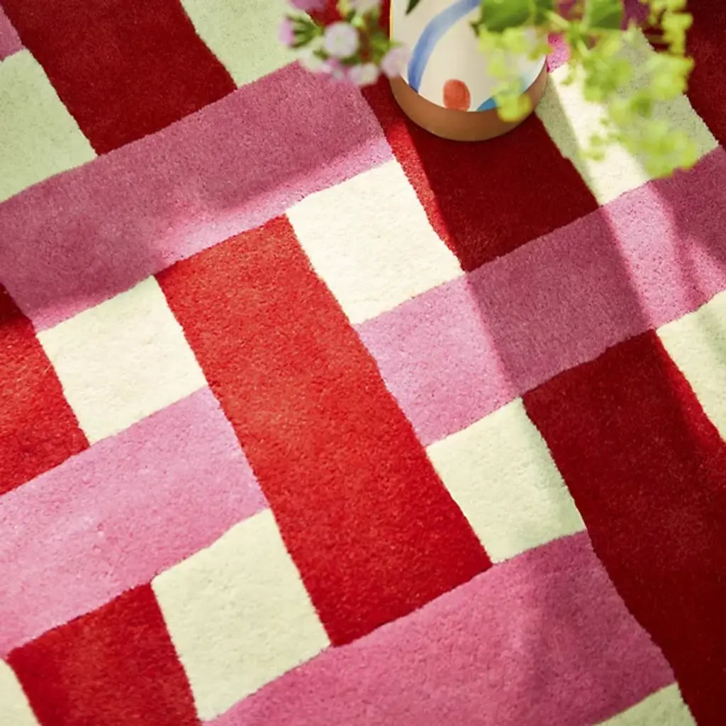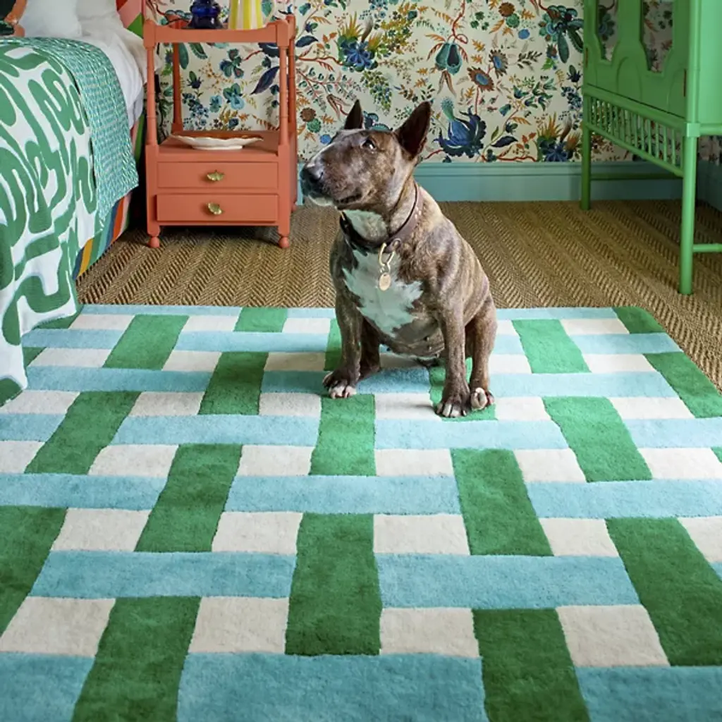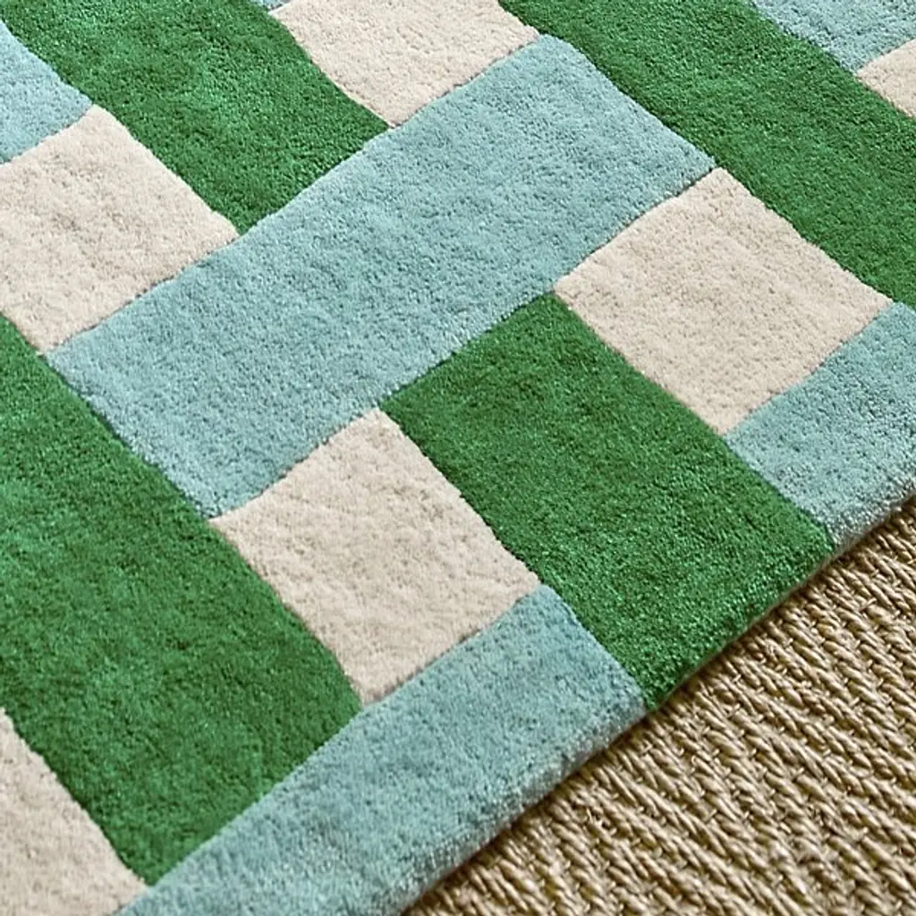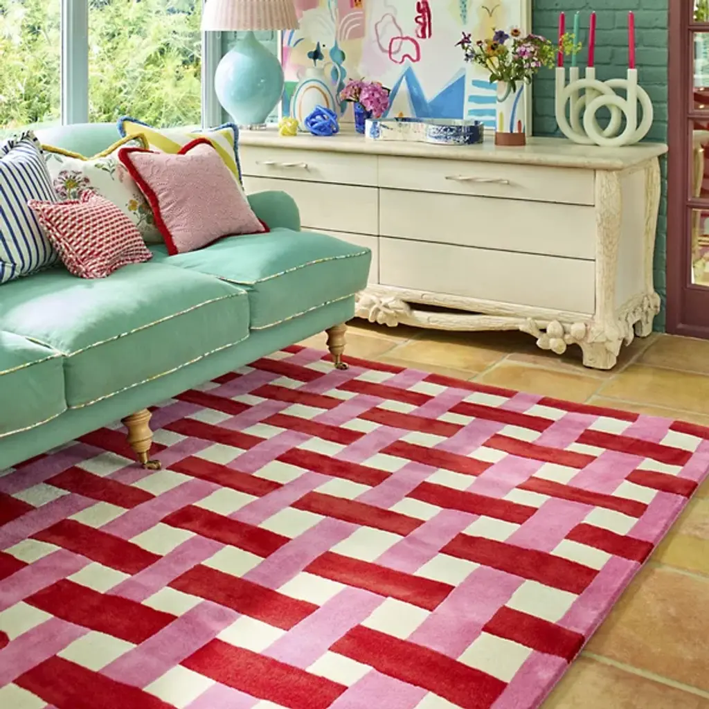 The Basket Weave Area Rug from Harlequin recreates the interlaced pattern of traditional basketry through alternating rectangular blocks. Handtufted from pure new wool in India, this design mimics the over-under weaving technique in visual form rather than actual construction. The checkerboard-like arrangement creates texture through color alternation while maintaining overall pattern regularity. This rug excels in dining rooms under tables where its structured pattern complements furniture lines or in studies and offices where its orderly appearance supports focused work environments.