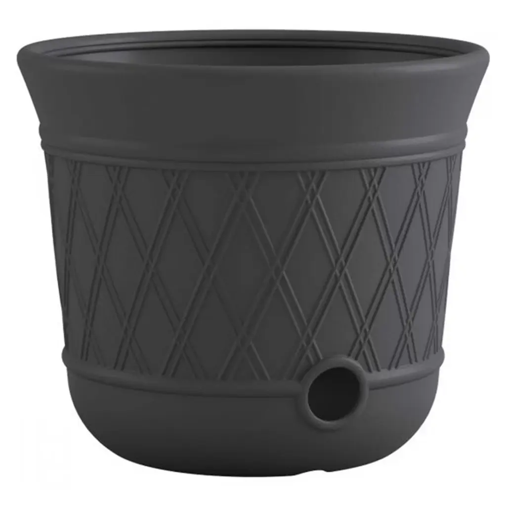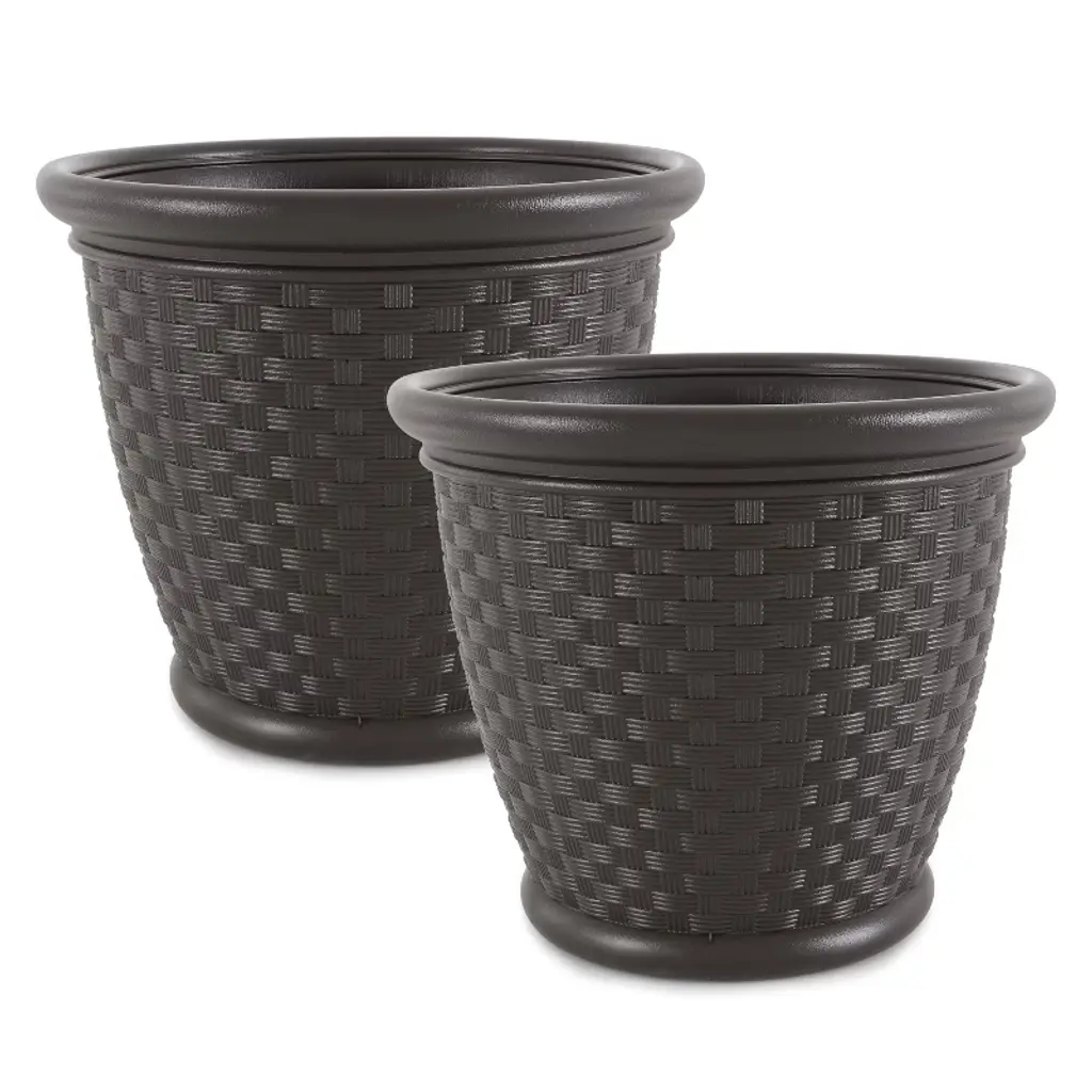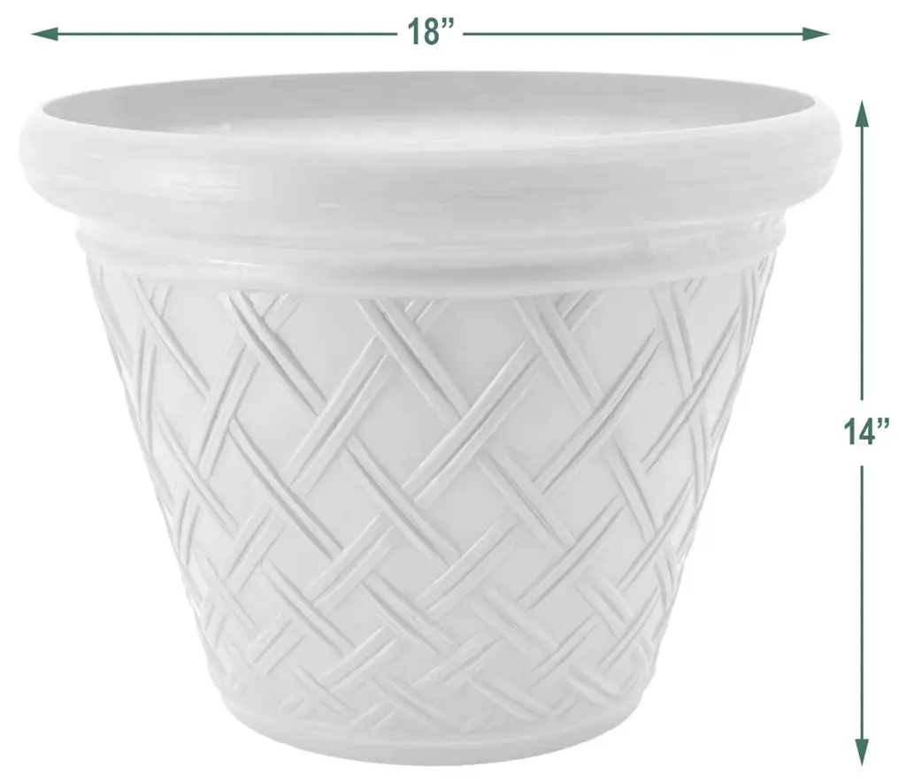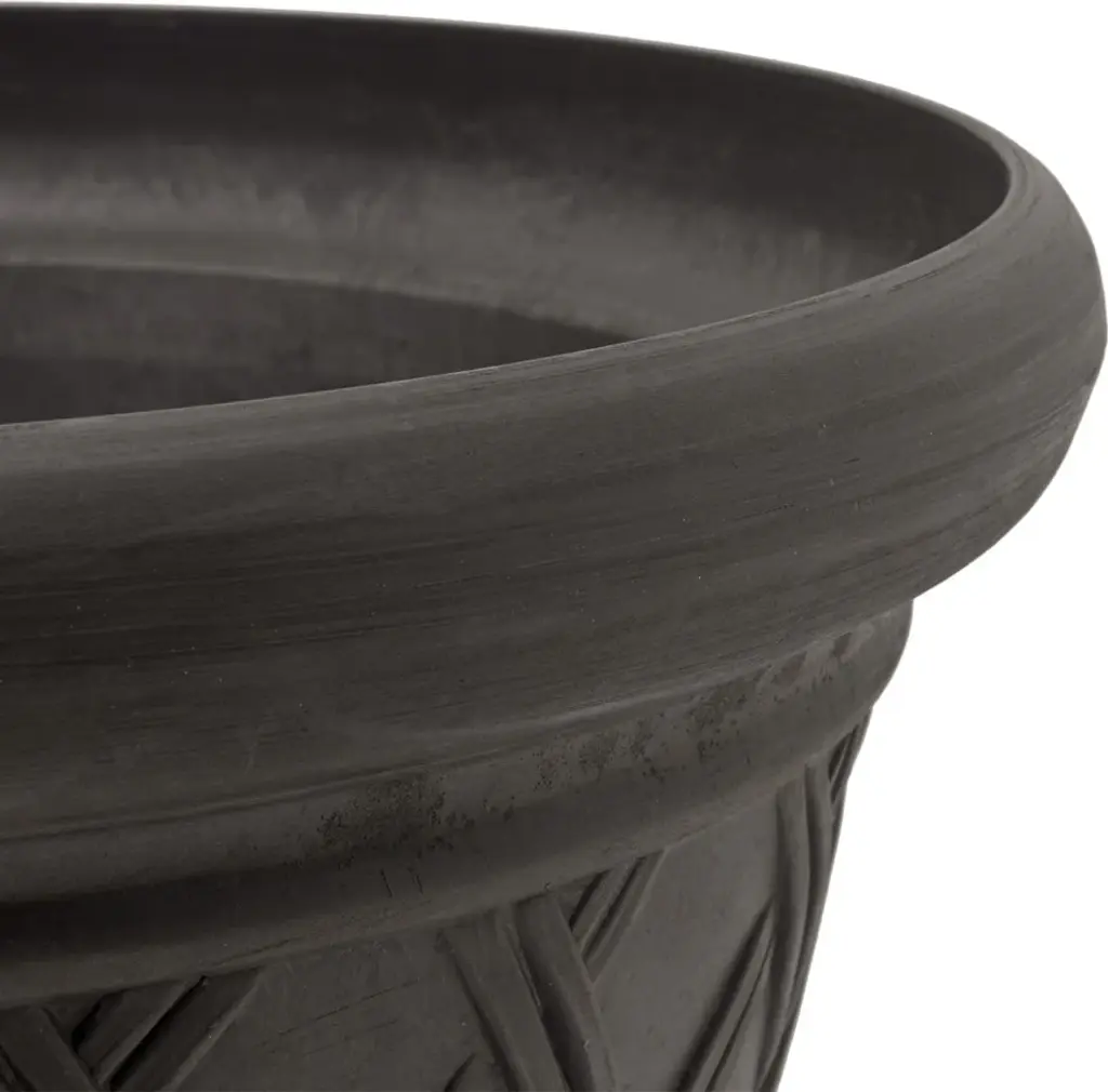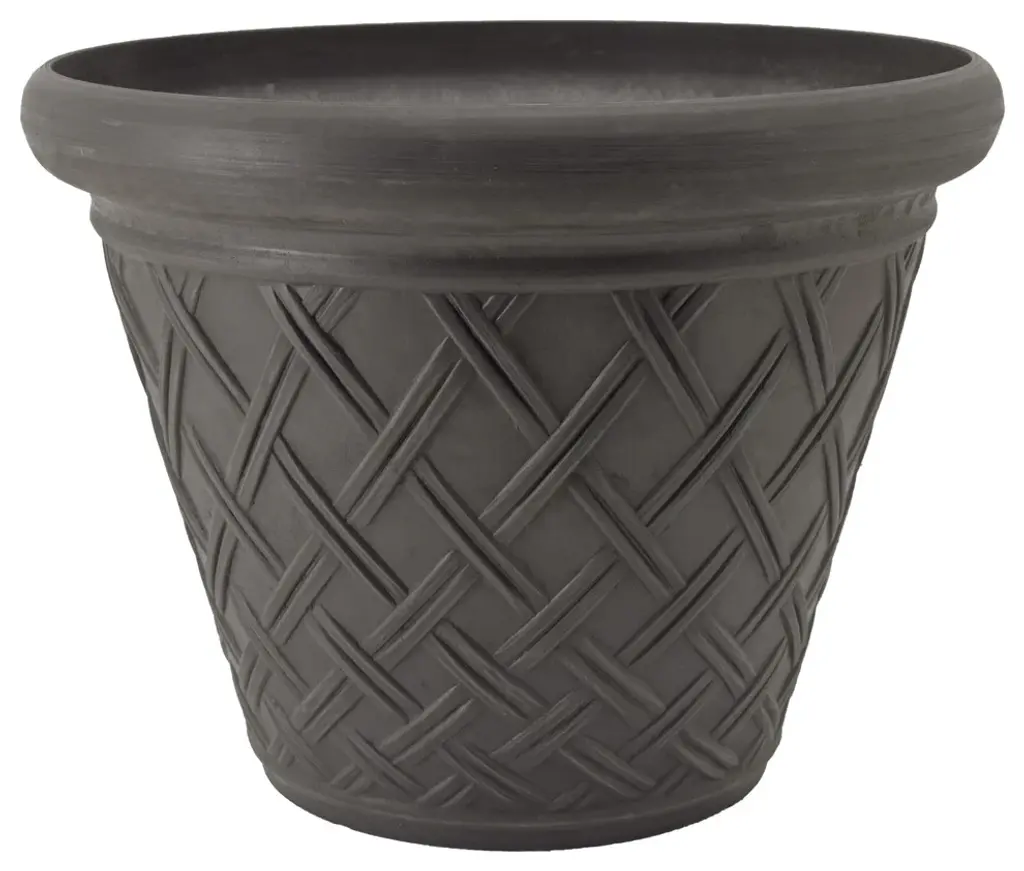 Showcase your favorite flowers and greenery in the ecofriendly Basket-Weave Pot. Made from a mix of recycled polymer, stone powder, and wood dust, this charcoal gray pot is lightweight, weather-resistant, and durable. Its classic shape and basket-weave exterior complement traditional decor.